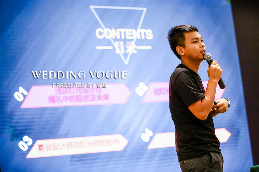 九零传媒的章方朋讲解了灯光对于婚礼现场,以及灯光与婚礼主持之间的关系。一场成功的婚礼,布置、主持、灯光、摄影摄像等都缺一不可,他们不是独立工作,而是始终处于一个互相影响的关系中。作为主持人,需要灯光师为你营造出想要的氛围,彼此间有效的沟通很重要,可以保证婚礼的每个环节先做到恰到好处,然后慢慢寻求超越和惊喜。