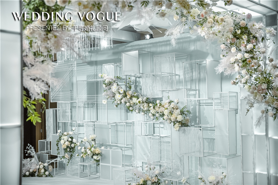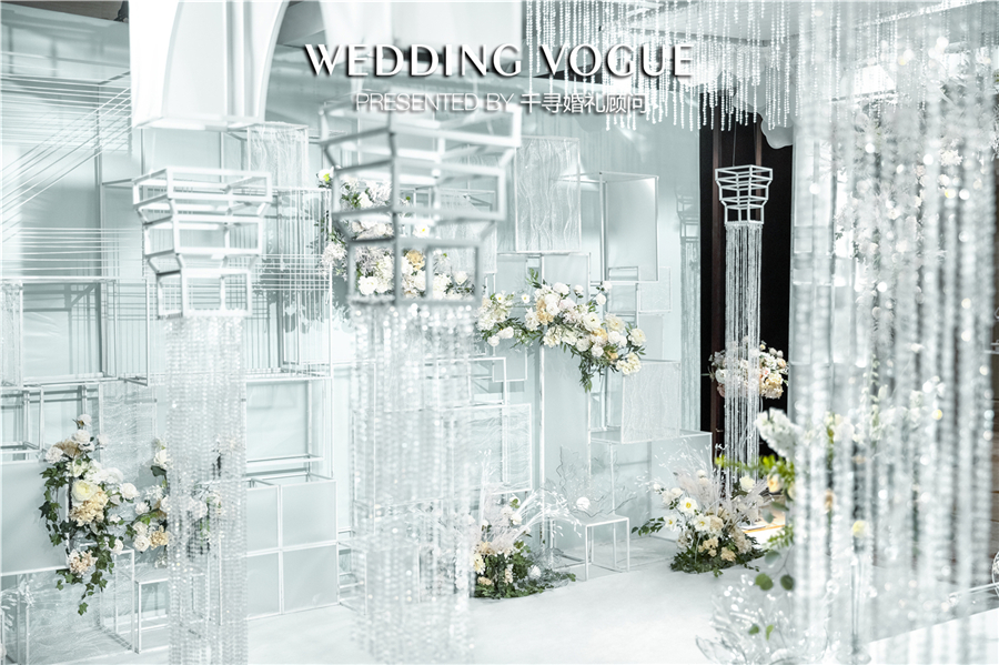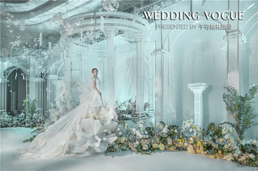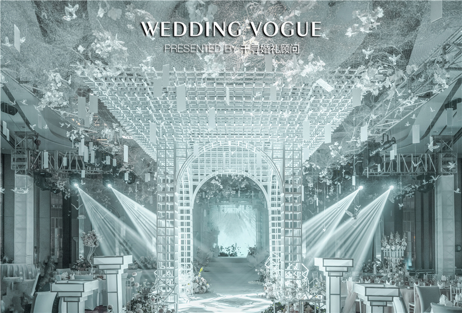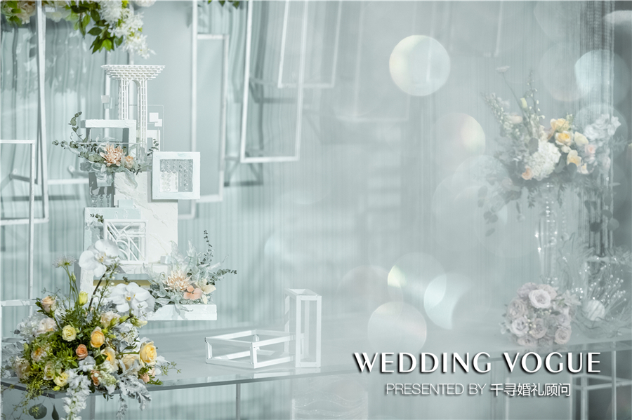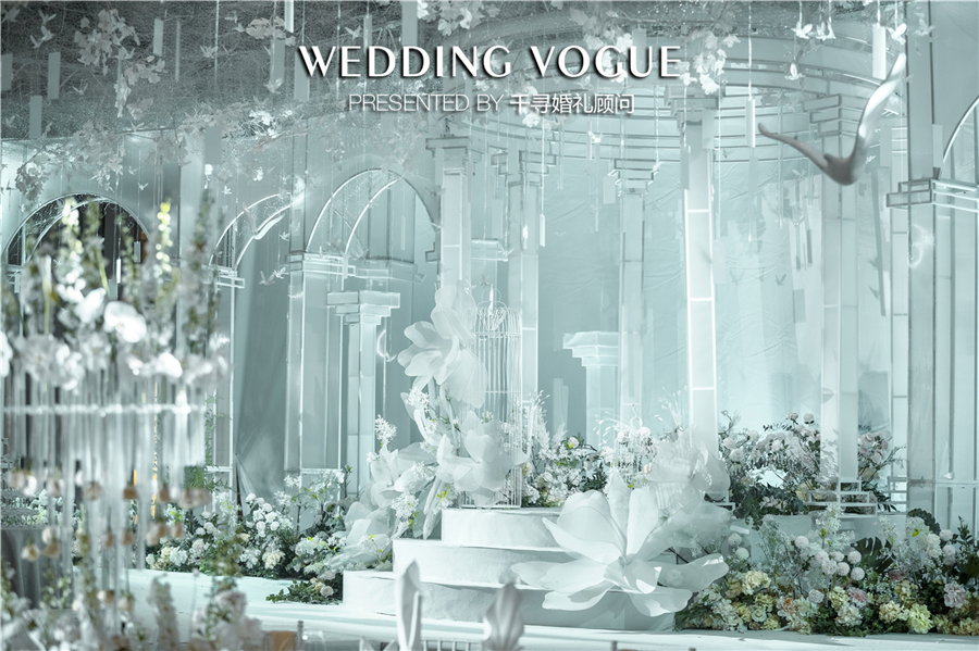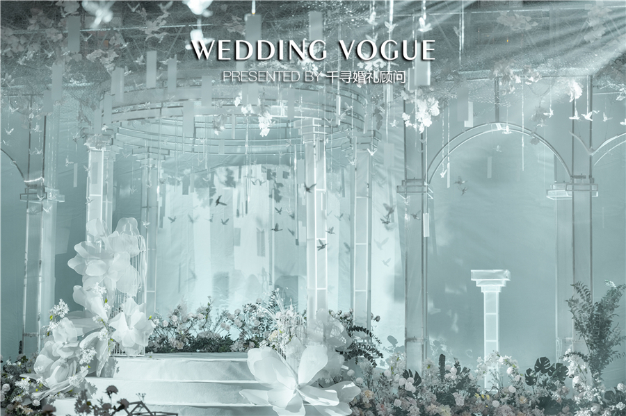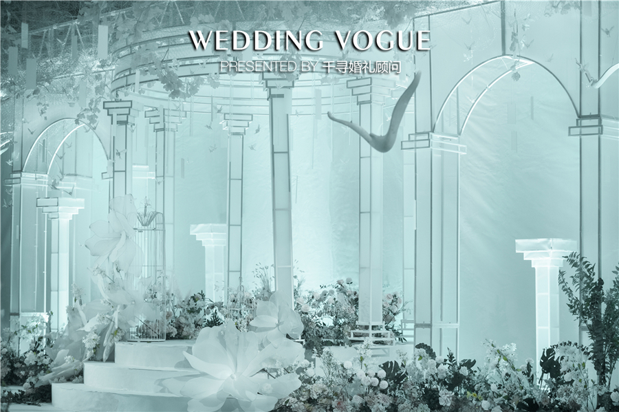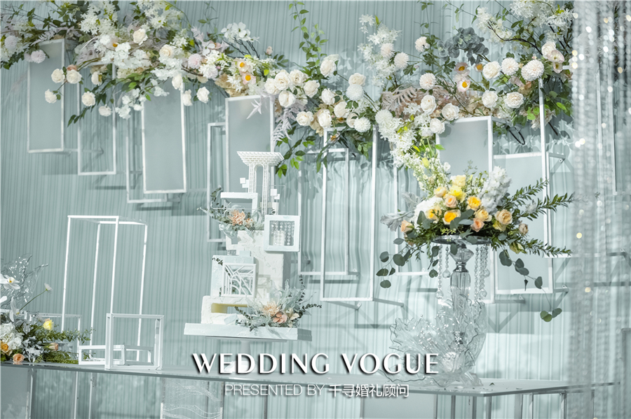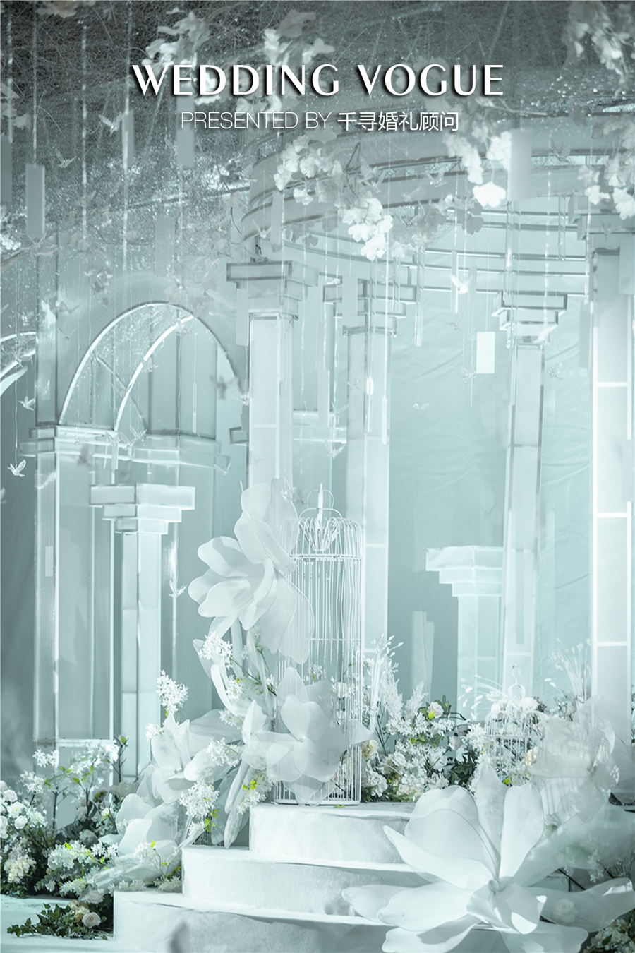 对于现场的宴会设计,要求梦幻空灵,清新雅致,于是千寻婚礼借鉴了国外一些城堡的灵感,参考了室内设计的元素,让这场婚礼整体设计创意不论是在区域设计:迎宾区、仪式亭、与主背景,还是细节设计:主蛋糕、手捧花、胸花的设计,都从各方面结合“建筑”这个灵感来展开创意。打造这场森林幻境,犹如置于森林中一座古堡。