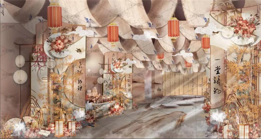 在近年间,中国风的婚礼已经给人们形成了某种思维定势——红色或金色、华丽或清雅等,似乎将中国风圈入了一个小众而固定的范畴。所以这次,小井婚礼抛开“固定搭配”,用“平衡”将隐藏在细节里的“永生与轮回、阴阳与刚柔”一丝一毫的娓娓道来。