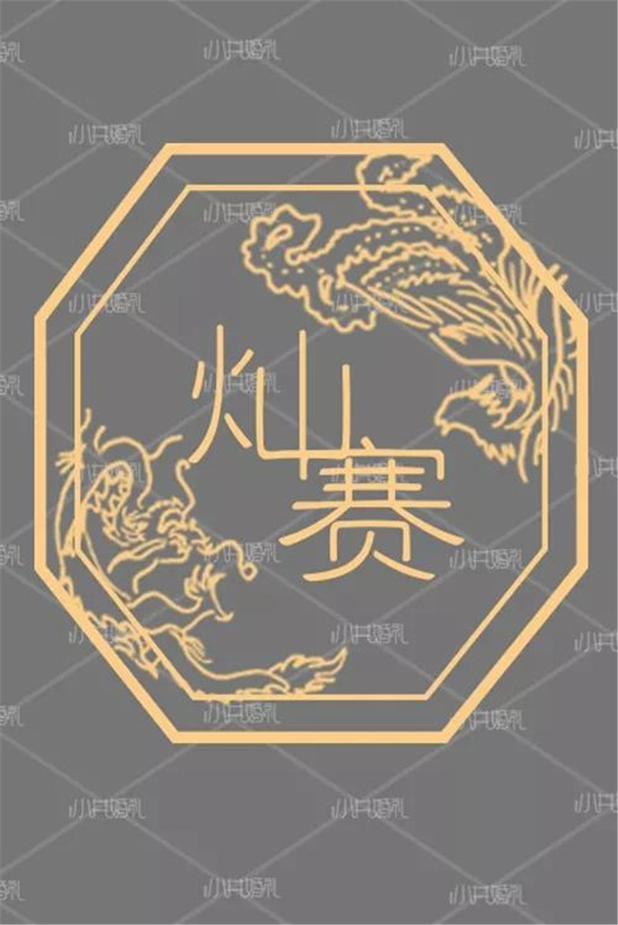 以龙凤为主元素,将二人名字和龙凤元素以“左阳右阴”分布,边框也采用了方与圆结合的“八角边”,不仅与“发”谐音有发财之意,更在八卦之中有着极大无限轮回之意。