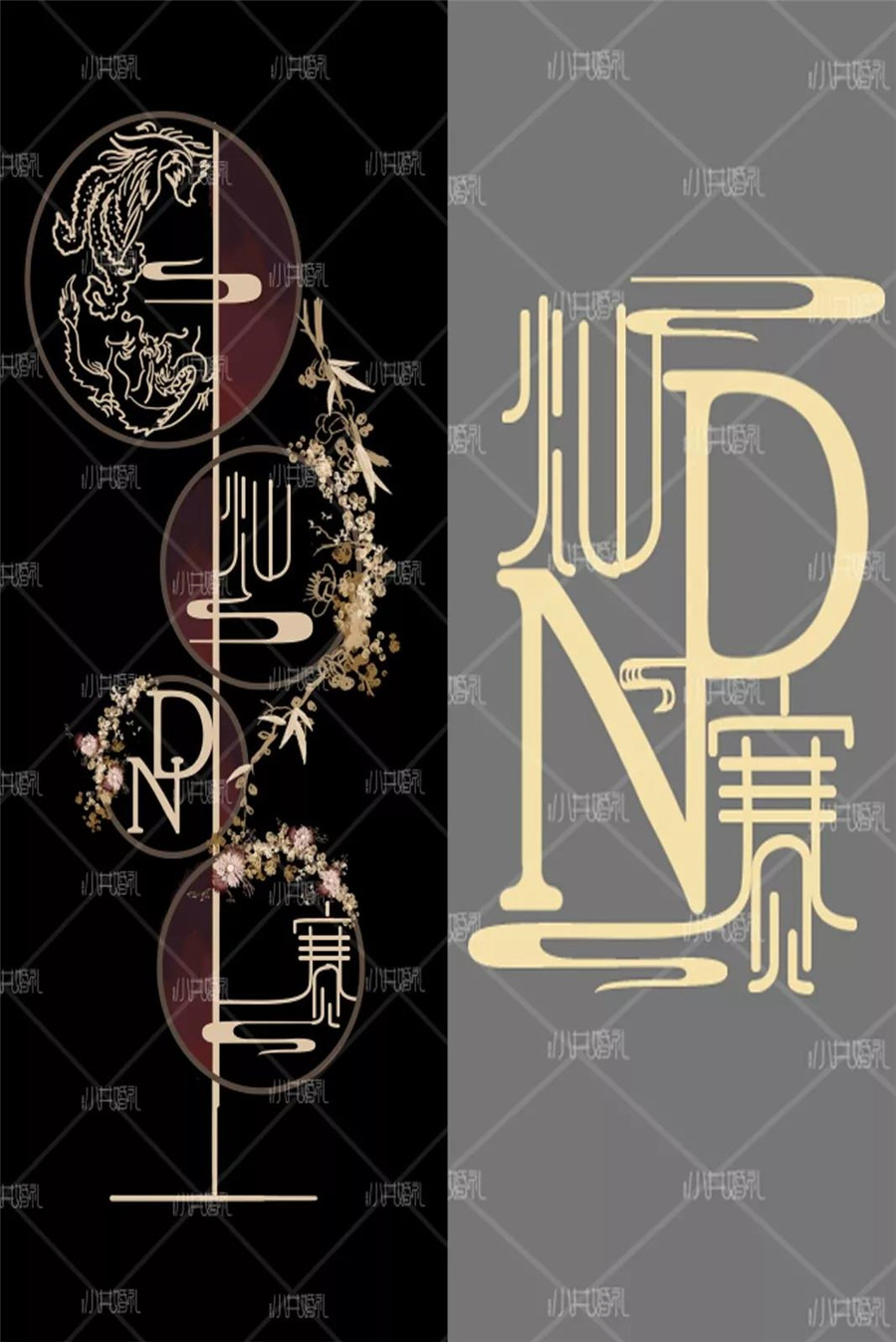 以两位新人姓式首字母以及名字最后一个字做了结合,而字体做了则水纹的设计来对比字母的线条硬朗,气势磅礴而又绕指柔肠。