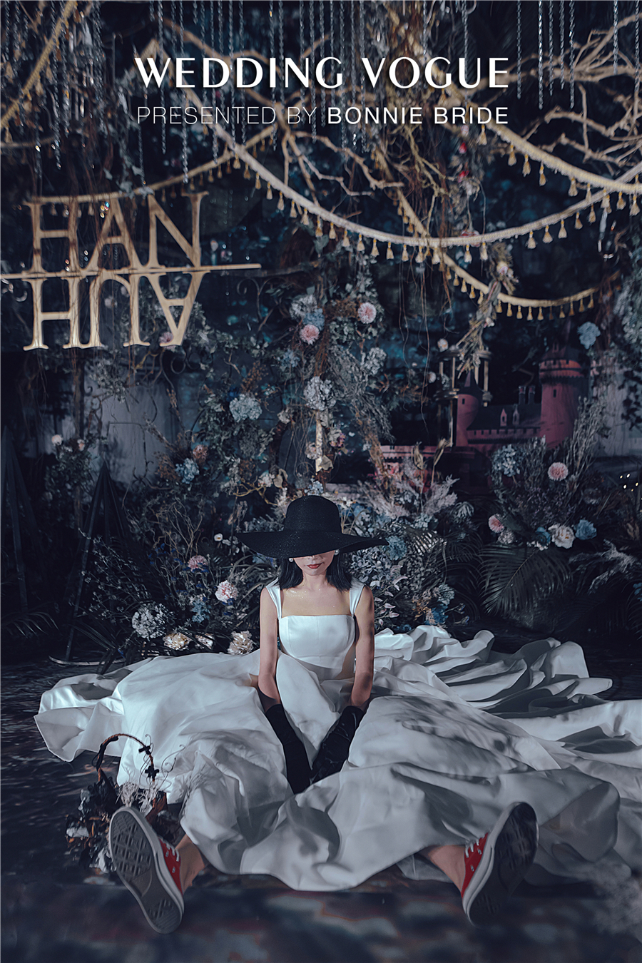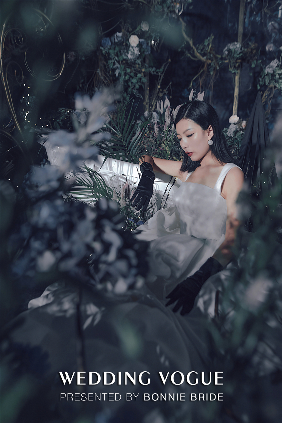 黑色礼帽和手套,黑色大丽花填满的手捧,暗黑哥特风用小细节一一丰满。