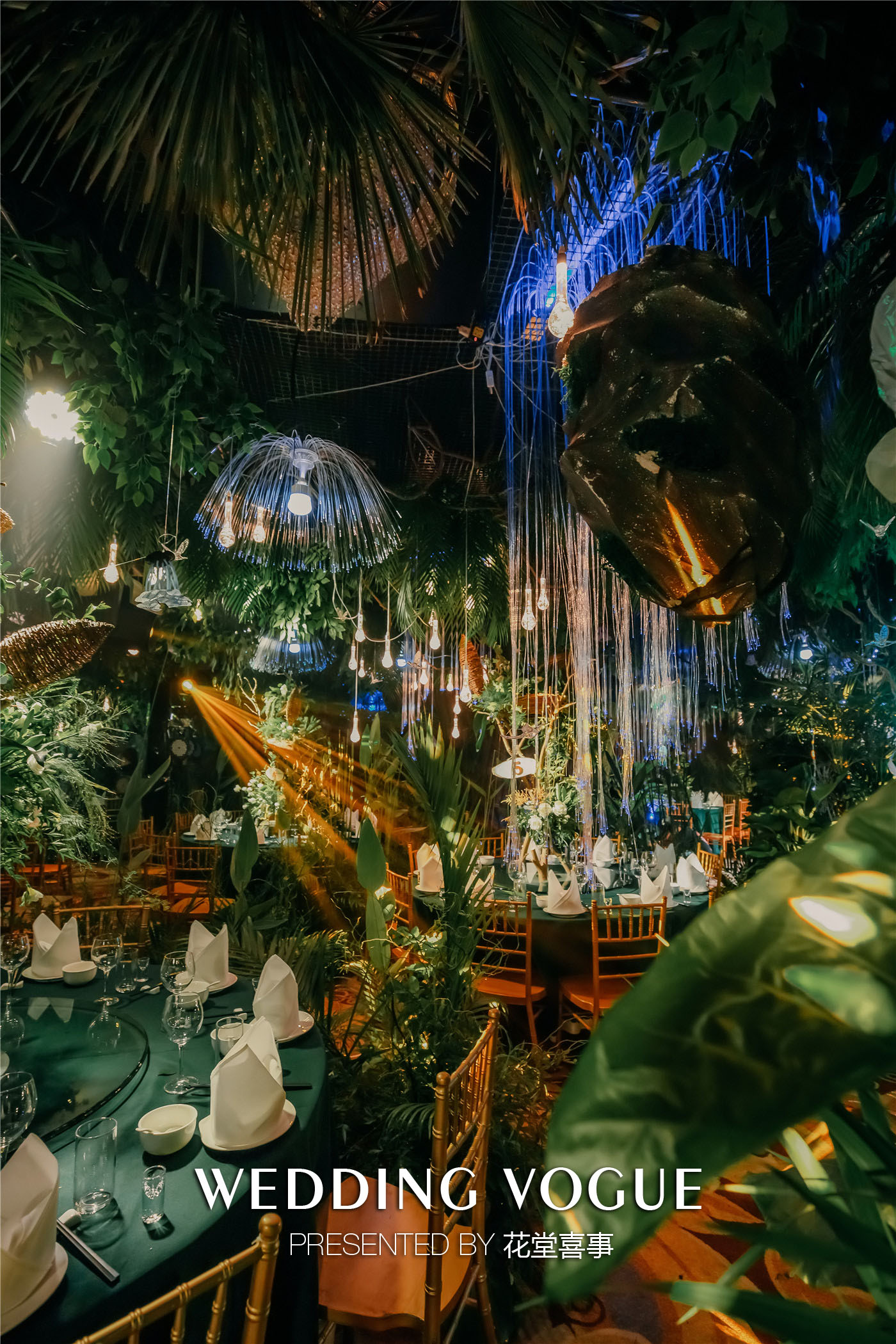 整个宴会所有的宾客也是非常享受的,我们希望现场是一个沉浸式的体验,看到每个人都去感受这片热带雨林,我们知道我们是成功的!同时我们也想要的不仅仅只是追求一场多么完美的场布,我们也希望我们的服务真的是去打动客人,结束完之后客人对我们的肯定和赞扬,真的是非常非常的欣慰!