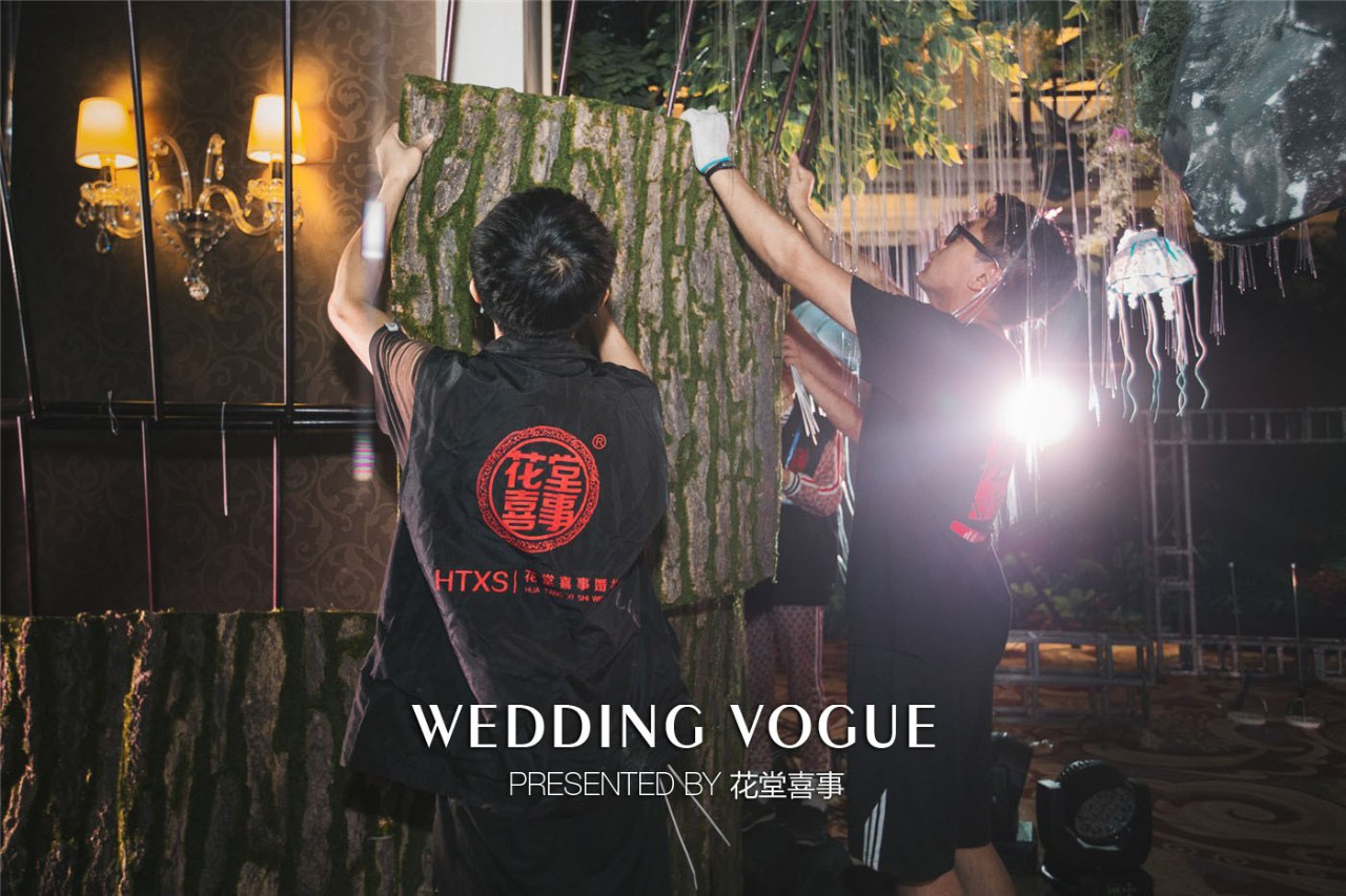 从进场到完成搭建花堂喜事婚礼只用了16个小时便完成了这场盛大的宴会,而且当时很多大型的道具是无法通过电梯上货的,完全由人力搬拉扛运完成。