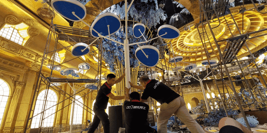 比如由于期间耽误了很多时间,每一项道具的安装和制作成为了这次婚礼最为担心的难点。难度在于制作周期严重不足,青岛的007婚礼特工24小时的道具制作和生产研发为这次婚礼的落地保驾护航。生产完最后几个道具,直接装车,一千多公里的路程陆运到了长春,连夜开始了搭建和安装。