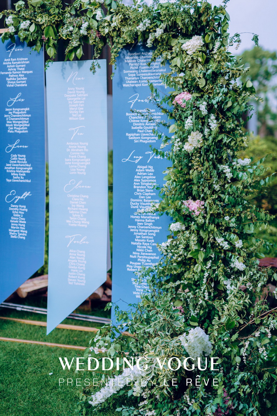 特别的露天晚宴,在养云安缦的草坪上准备完毕。绿植与鲜花环抱着深浅蓝色的座位表,成为绿叶间一道清爽亮丽的风景线。