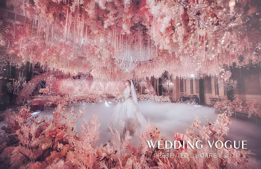 于是,为了实现新娘向往浪漫梦幻的少女心,为她设计了一片粉红色的“甜蜜梦境”……