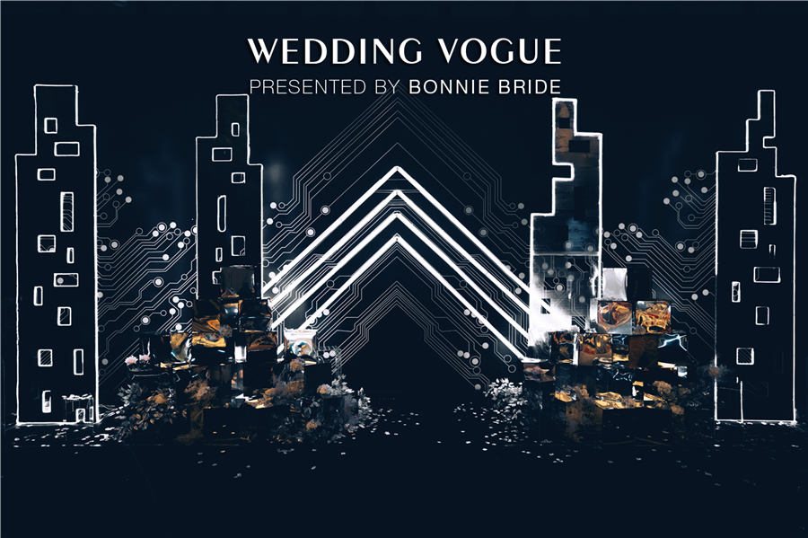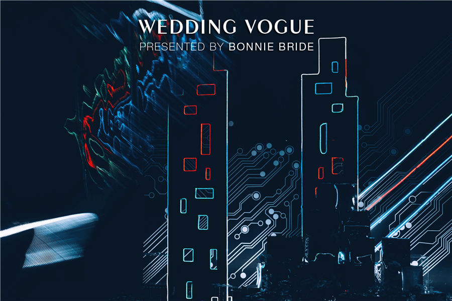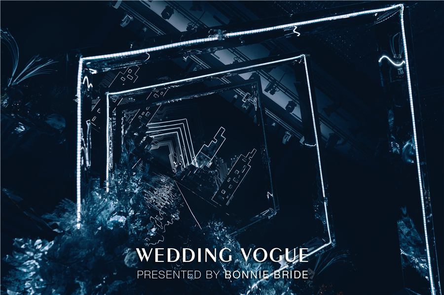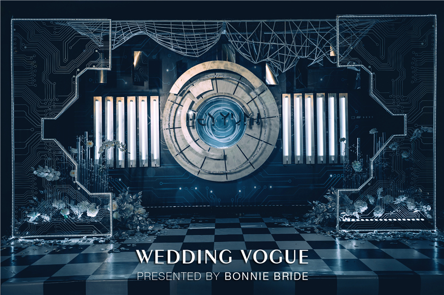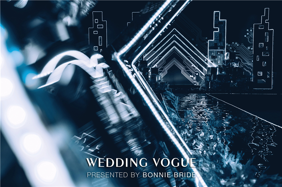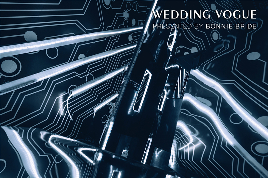 这场题为《9102:A Space Odyssey》的主题婚礼,以赛博朋克(cyber punk)为设计依托,结合《星际穿越》、《银翼杀手》、《攻壳机动队》等科幻电影,将婚礼场景打造成前卫简约的科技空间。