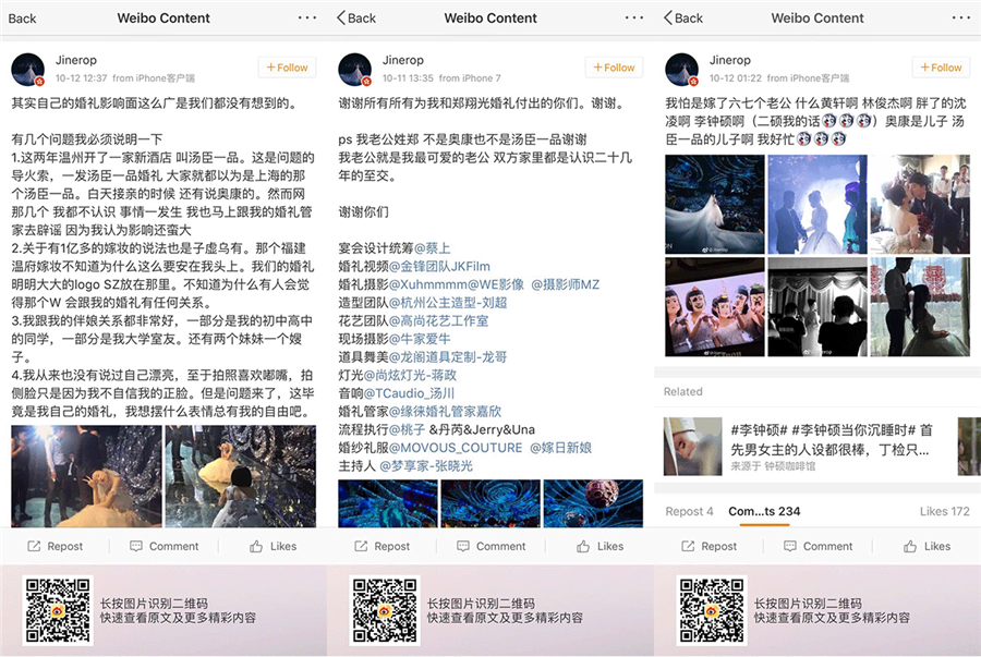 这几天婚礼人包括吃瓜群众的朋友圈、微博都在被这一场千万级别婚礼所刷屏,接二连三地争相报道来蹭这场奢华婚礼的热门。当然不乏一些直抒胸臆的言论。