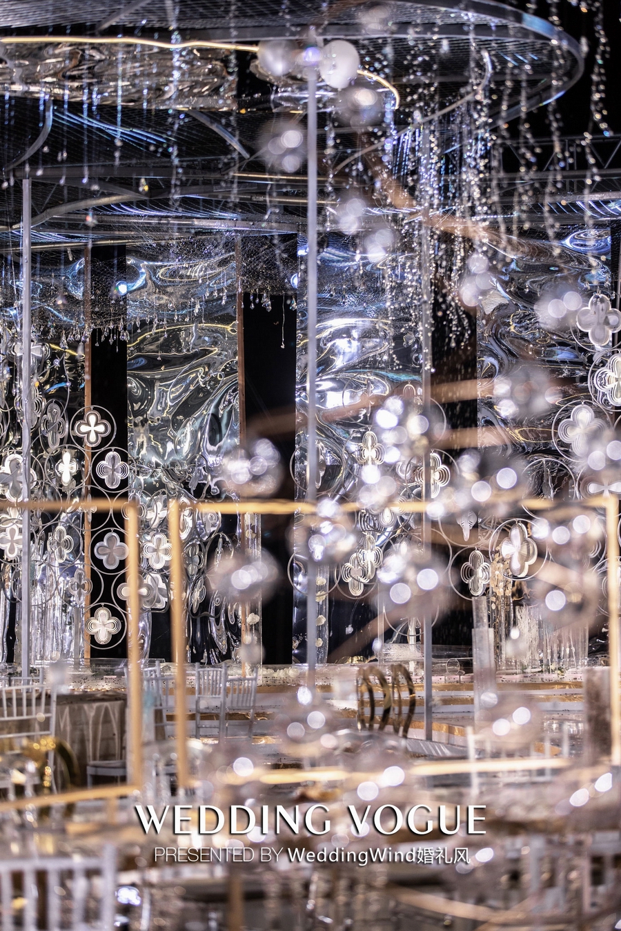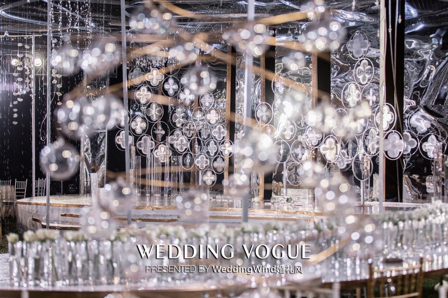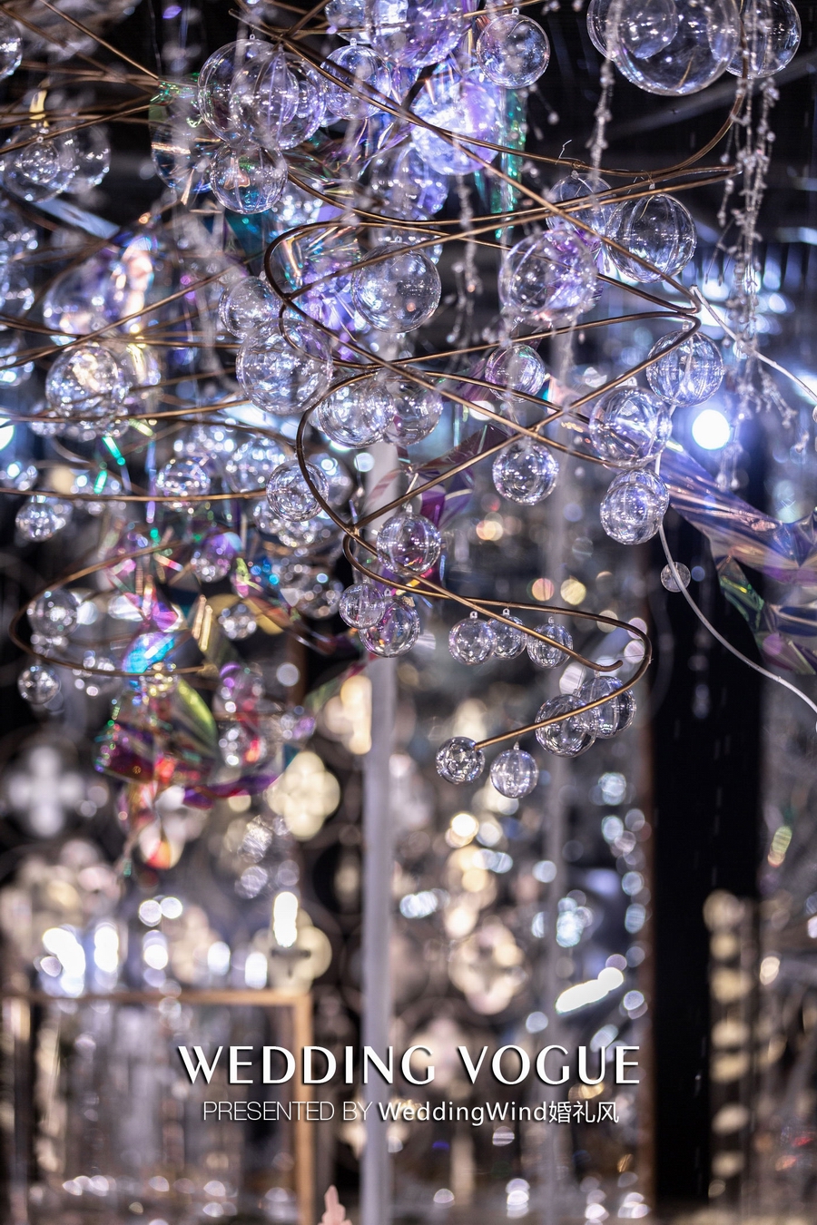 因为新娘喜欢bling bling的视觉体现,所以在以白色为主色系的婚礼现场内