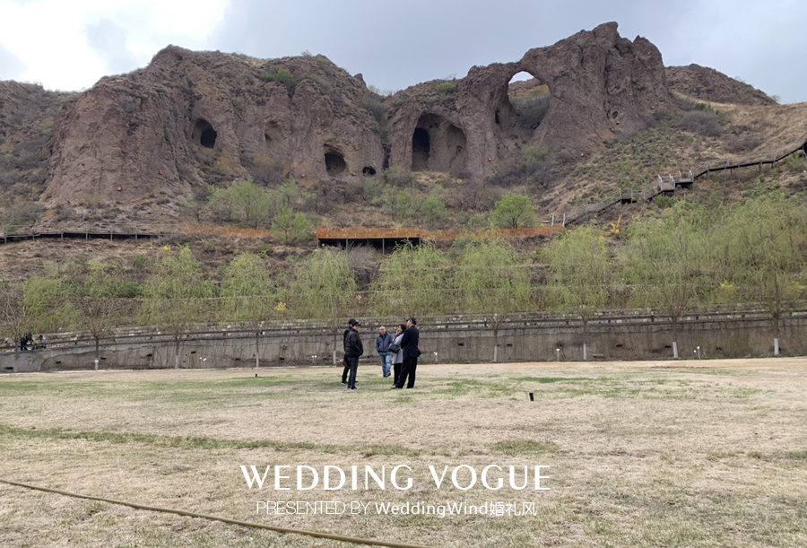 婚礼场地地处一个背靠大山的度假村,场地边上有一座经过亿万年才形成的山峦