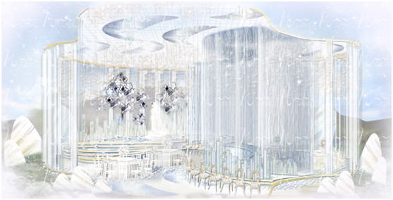 包含主舞台、通道及宾客餐桌在内的整体空间流线