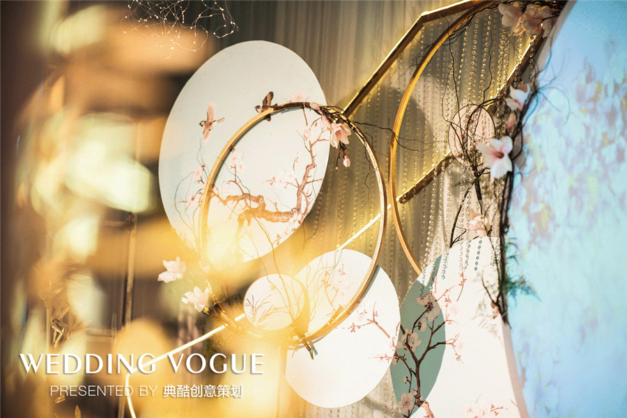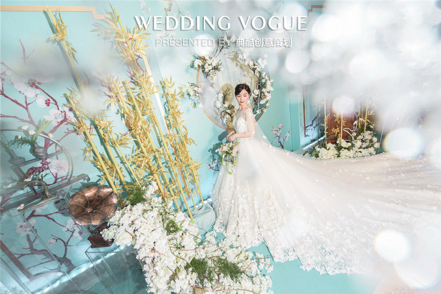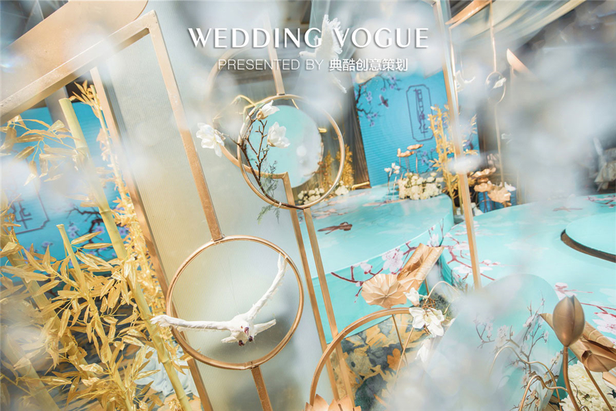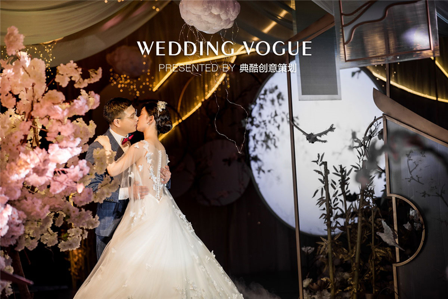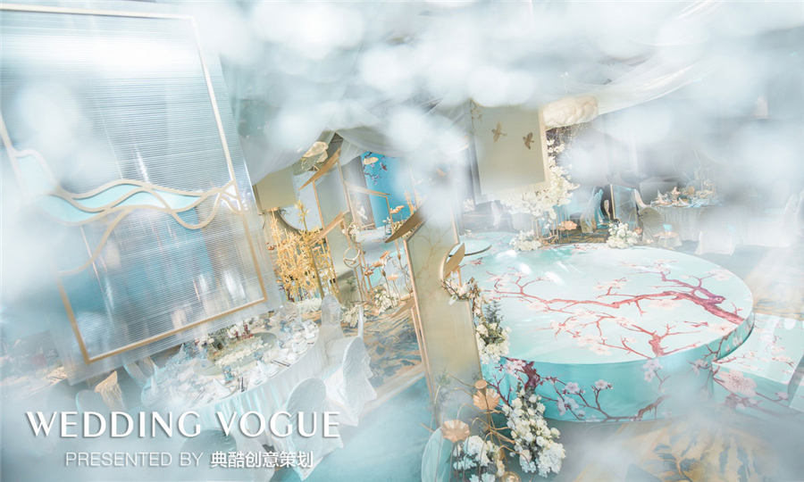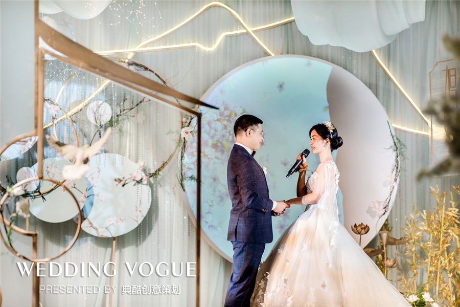 这是一场来自浙大学霸新人的新中式风格婚礼,主题叫做《水云间》。因为新郎和新娘的家乡分别是湖南和湖北,两省中间有洞庭湖相连,而他们又相识于杭州,在西湖成就这段佳缘,于是典酷创意策划的设计师便构思出这个“以水相连,云水相依”的主题,把大美西湖搬进了婚礼的现场。