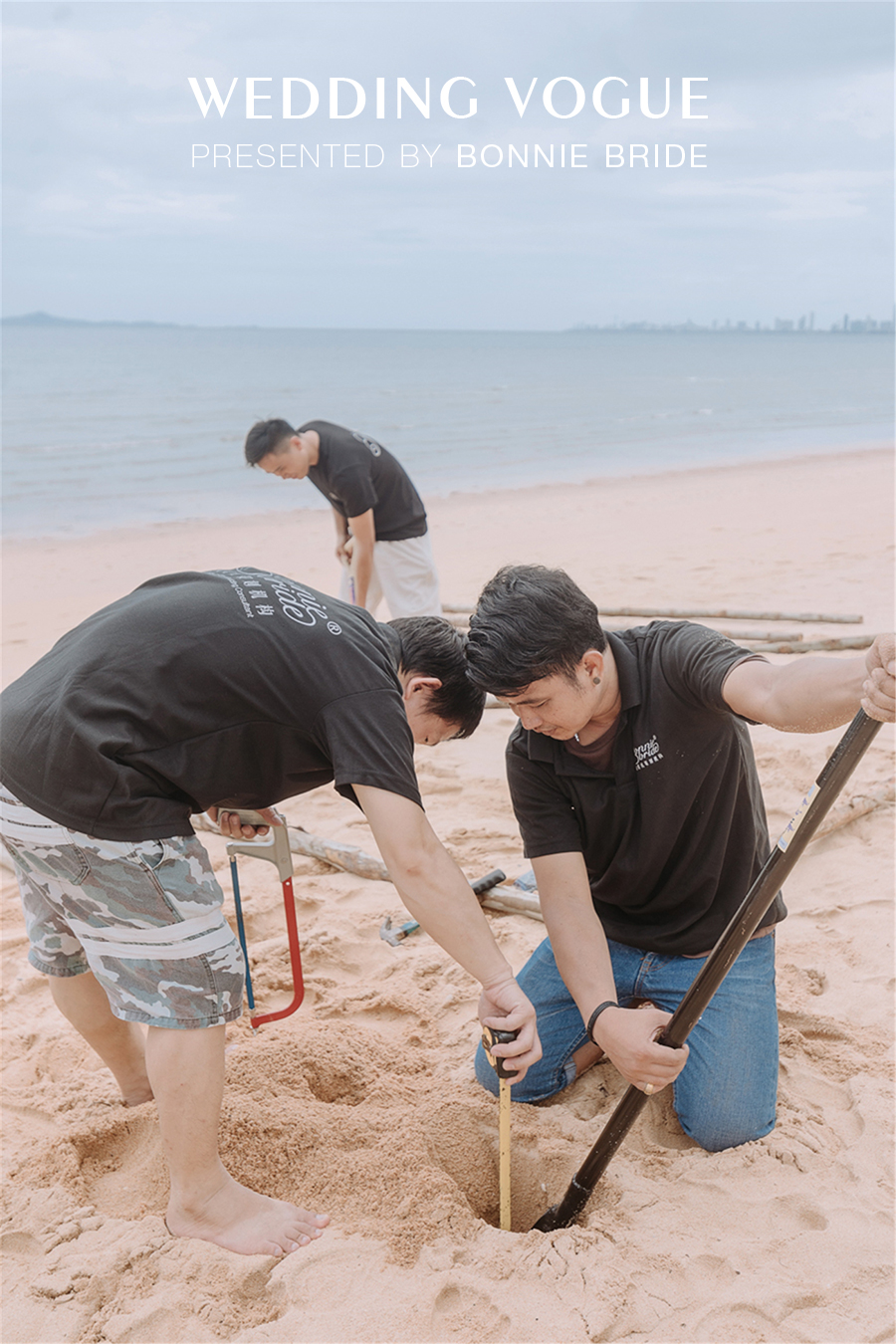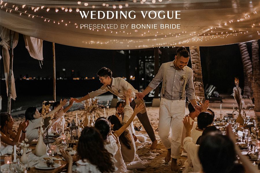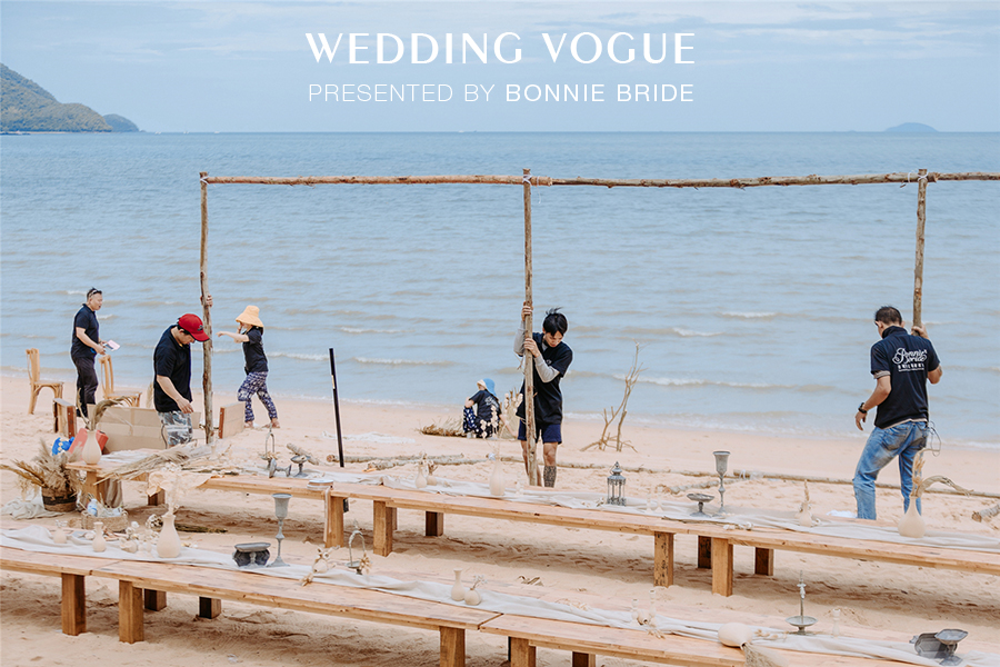 这场婚礼搭建感觉是在天气变化瞬间完成,拥有爱的魔力的他们,将没有任何特色的沙滩变成了豆豆梦幻的婚礼现场。彼时很有成就感,更是期待当天的婚礼惊喜了。