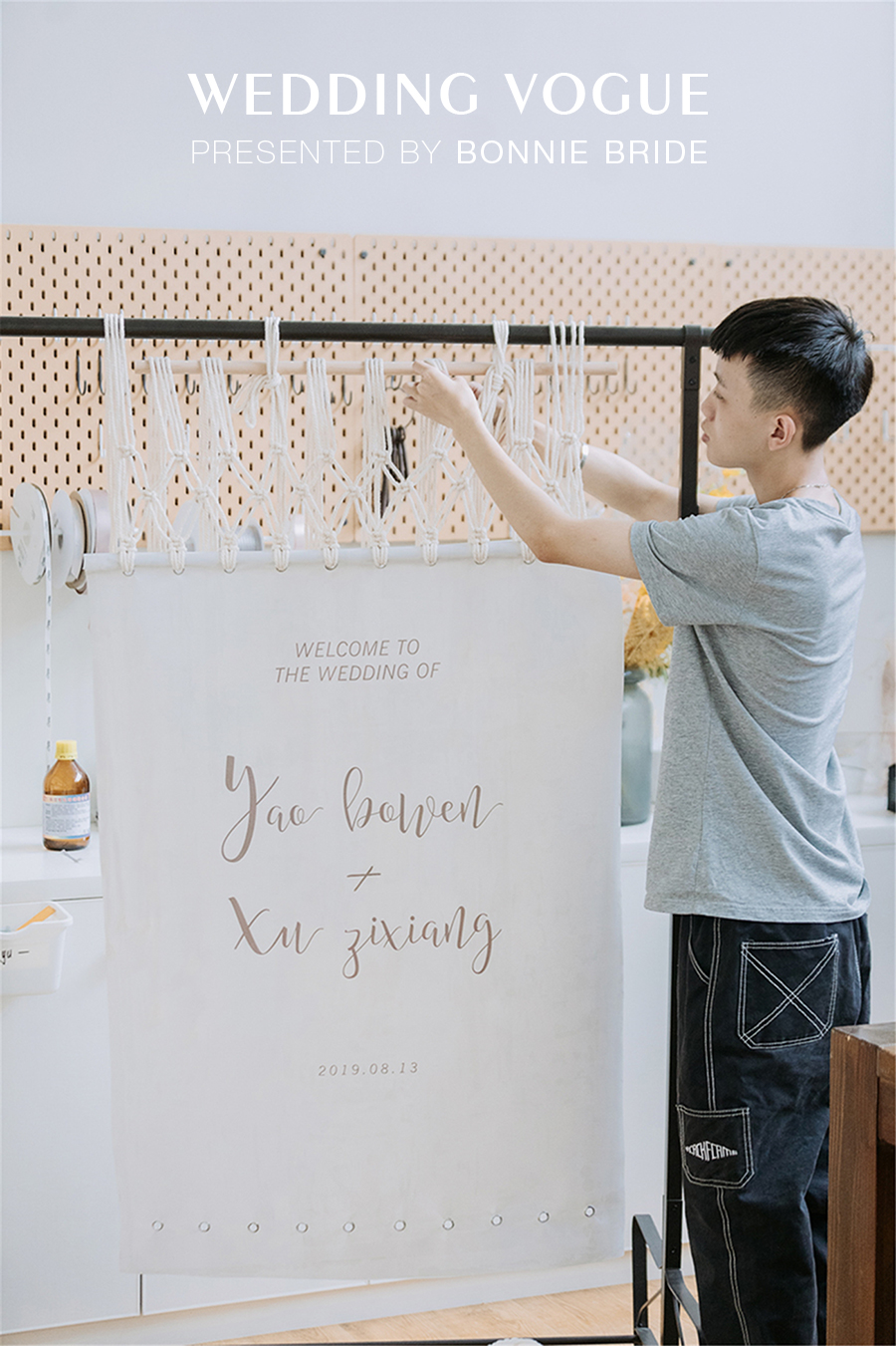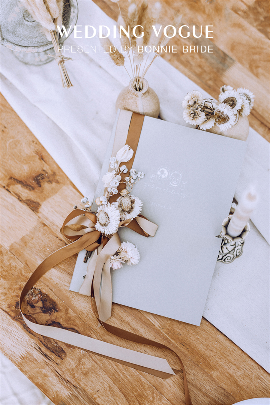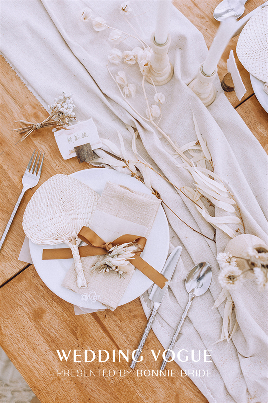 这次婚礼的主题很明确——“纯粹、自然”,所以精选的都是自然的材质。
