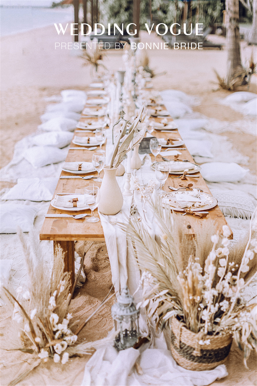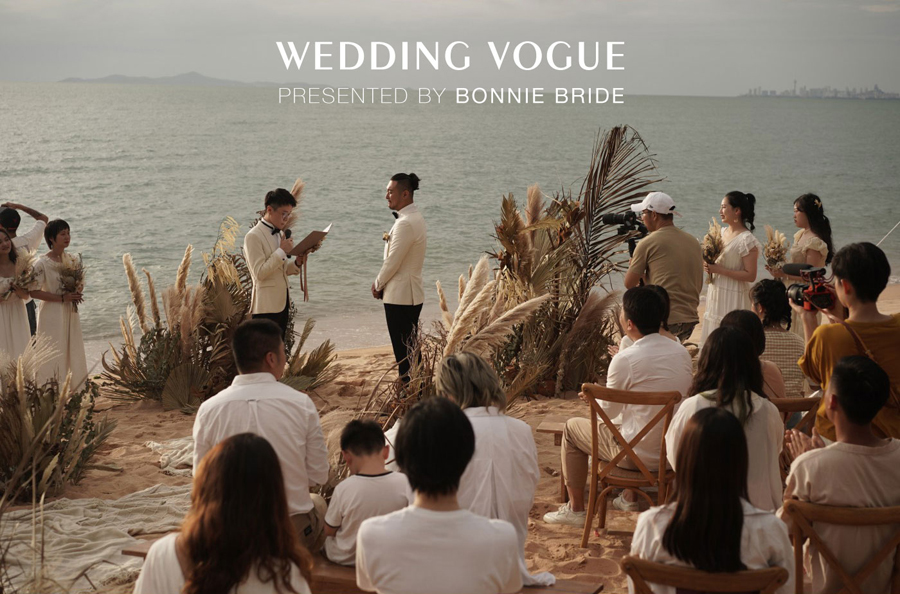 婚礼的整体色调选择上使用的是纯白和自然的米色调。在伯妮小伙伴们的心中,没有比白色更能代表爱情的颜色,因为他们的爱是那么简单和纯粹。