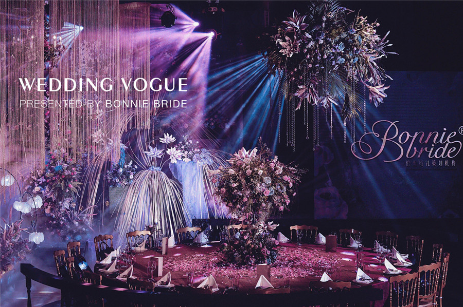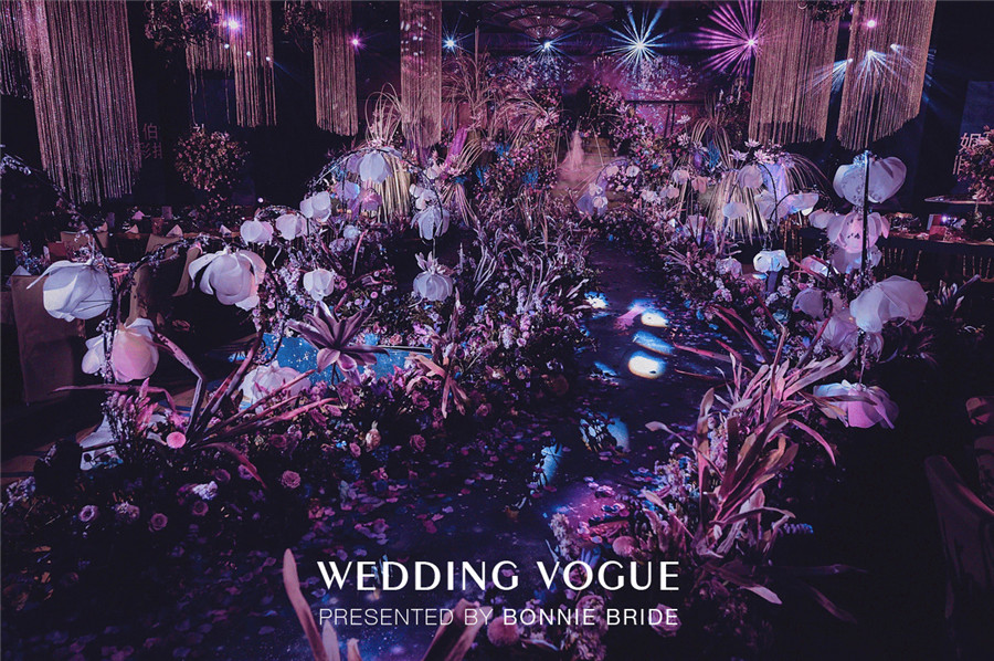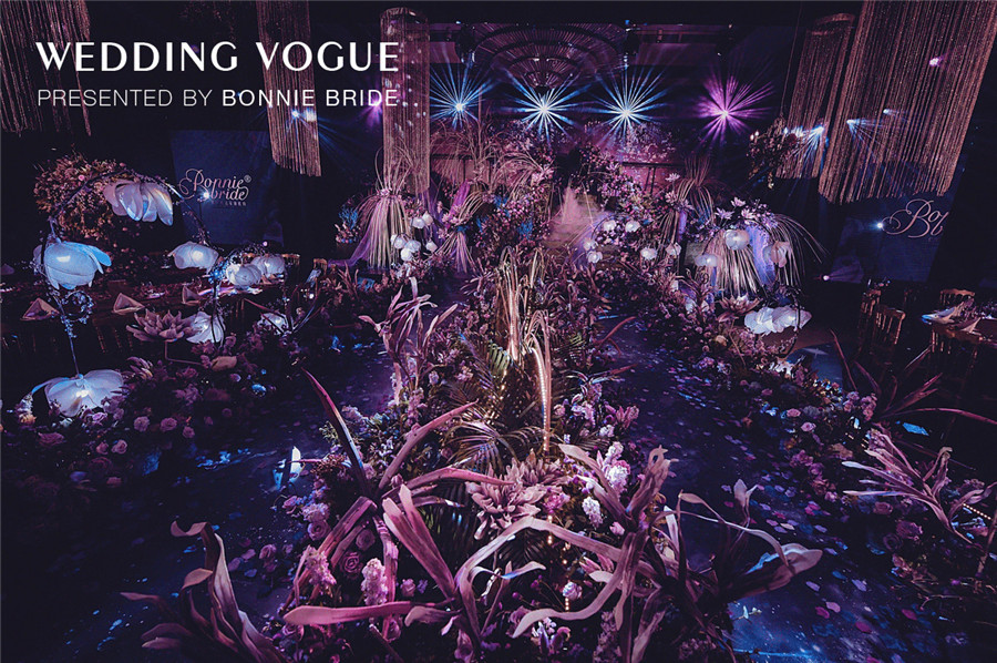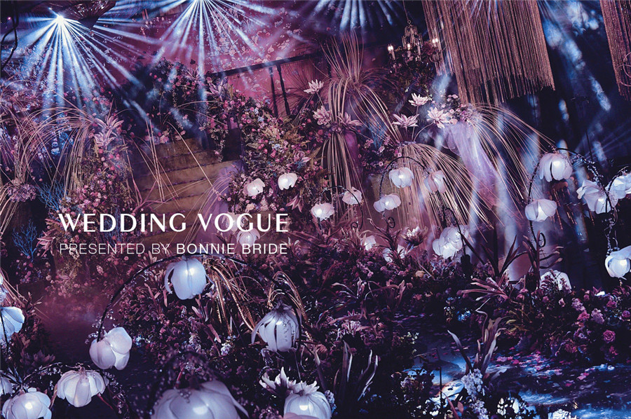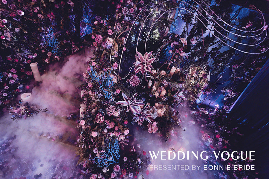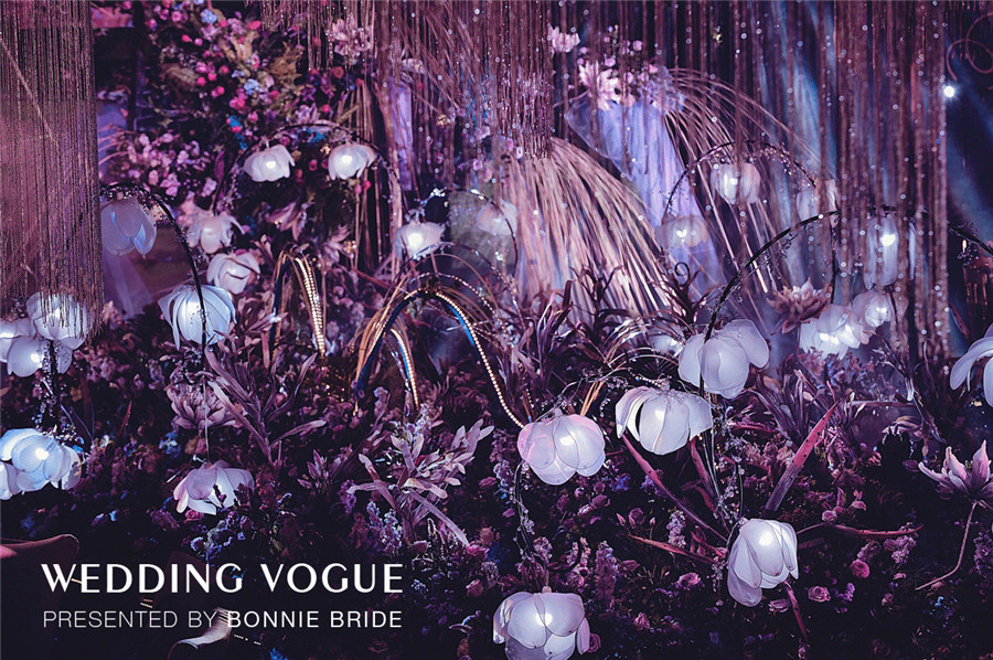 妞妞一直开玩笑说自己是在花园里出生的花仙子,而胖胖是拒绝小清新风格婚礼的........对于婚礼主题,其实胖胖和妞妞给了伯妮婚礼策划机构一些非常抽象化的概念。但伯妮团队却很好地理解了新人的想法和表达,为他们打造了一场融合他们想法,而又独一无二的婚礼——《梦游者的歌谣》。