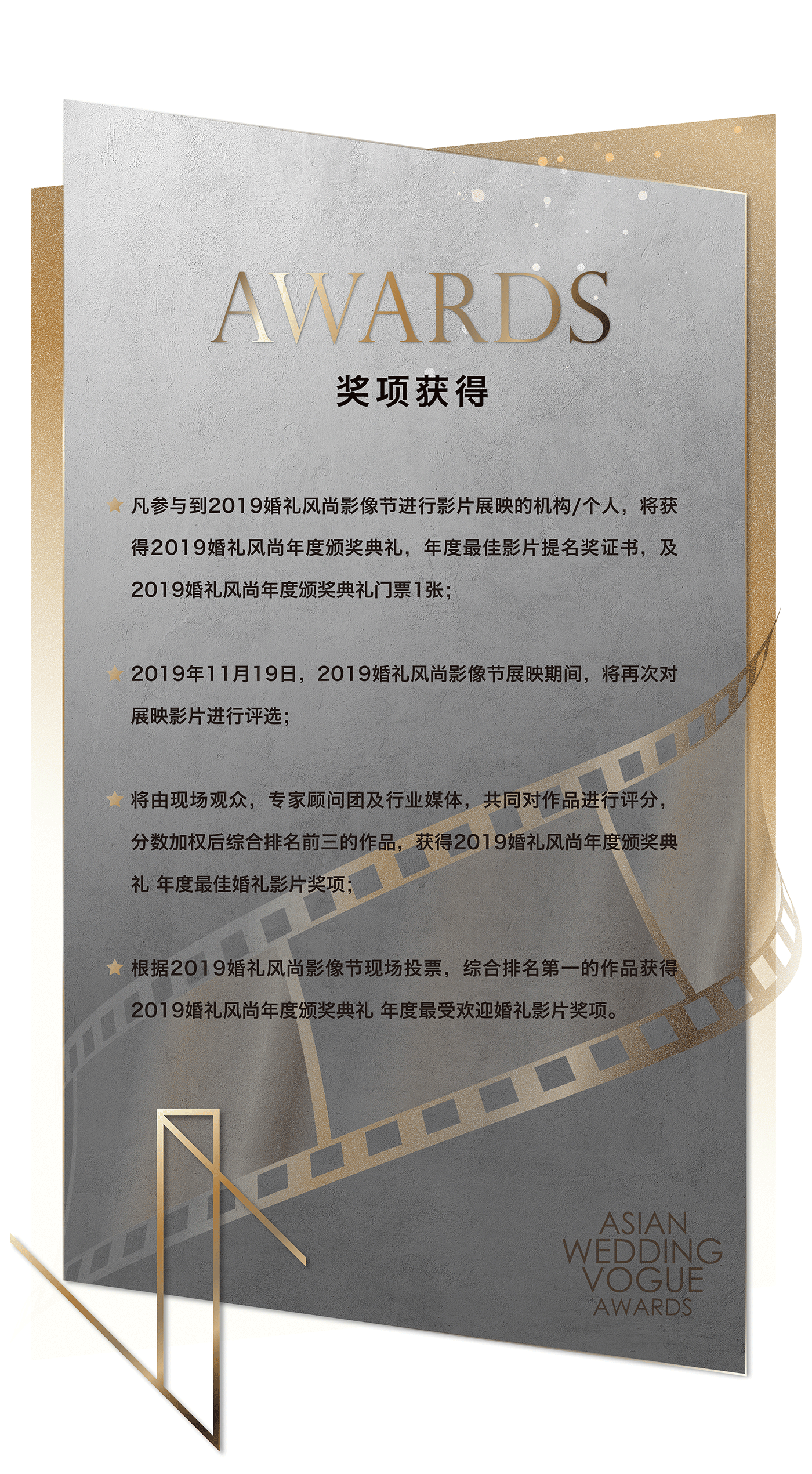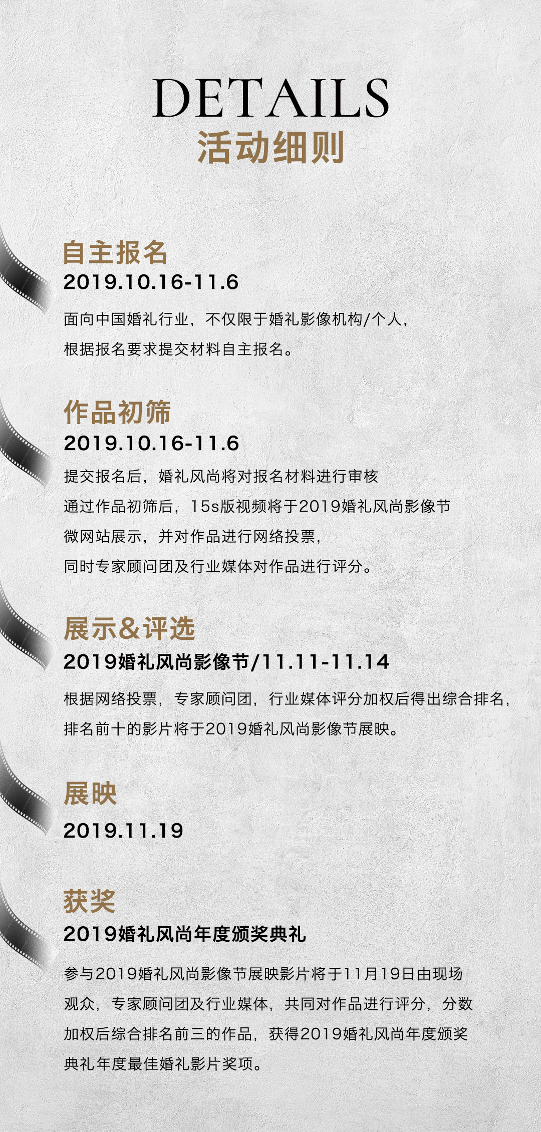 8. 凡通过作品初筛的机构/个人,均有资格申请2019婚礼风尚影像节门票。