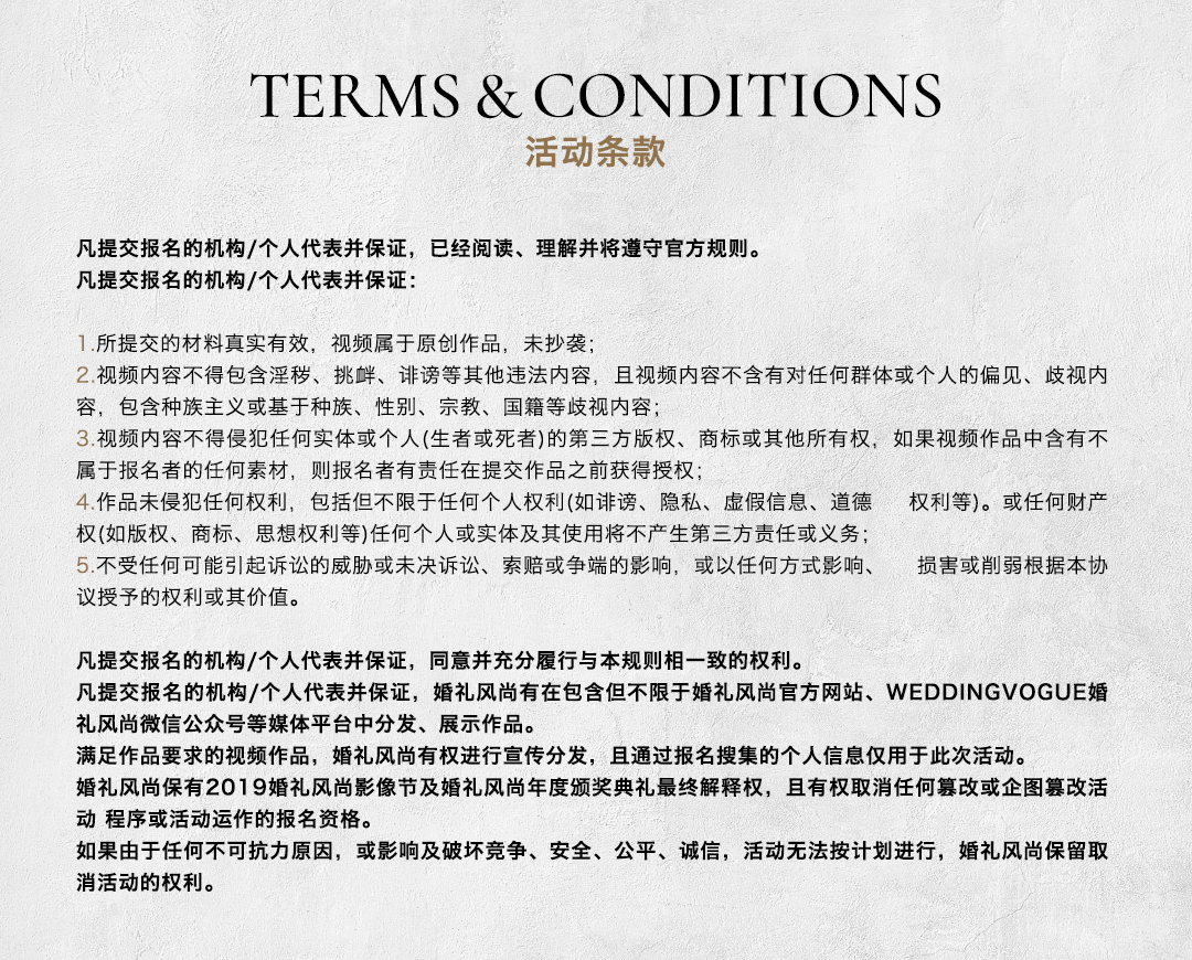 5. 作品初筛后,15s版视频将于2019婚礼风尚影像节微网站展示;