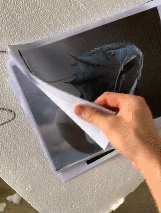 岚茉设计师开始寻找各类猛禽,水蛇的运动状态作为参考。仅仅巨龙飞行状态的参考图,就打印出了一本字典的厚度
