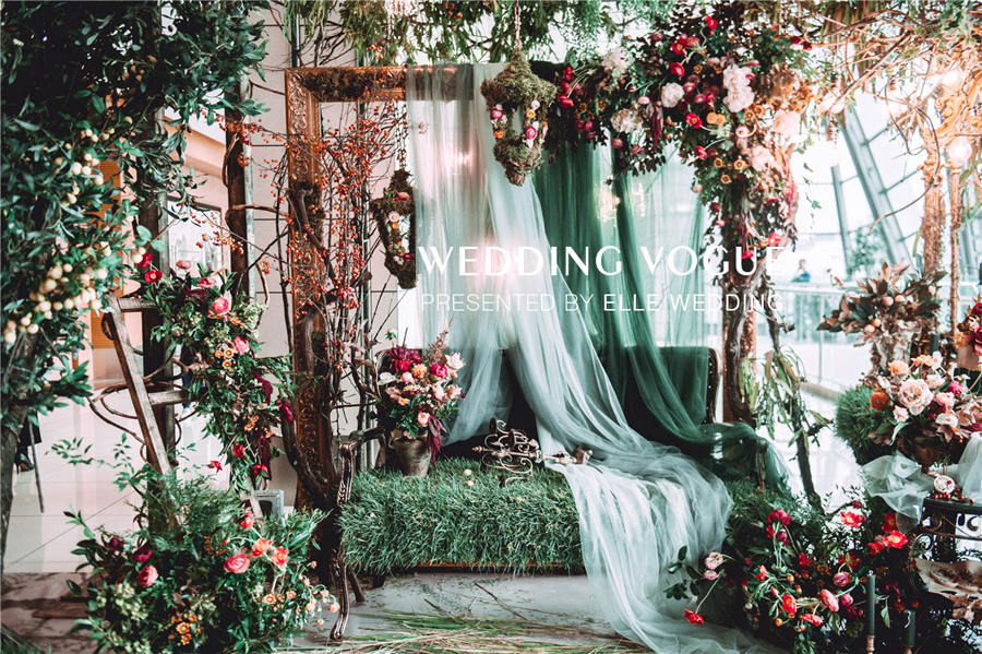 透着森系的歌剧魅影婚礼布置,像置身于大自然的超现实主义