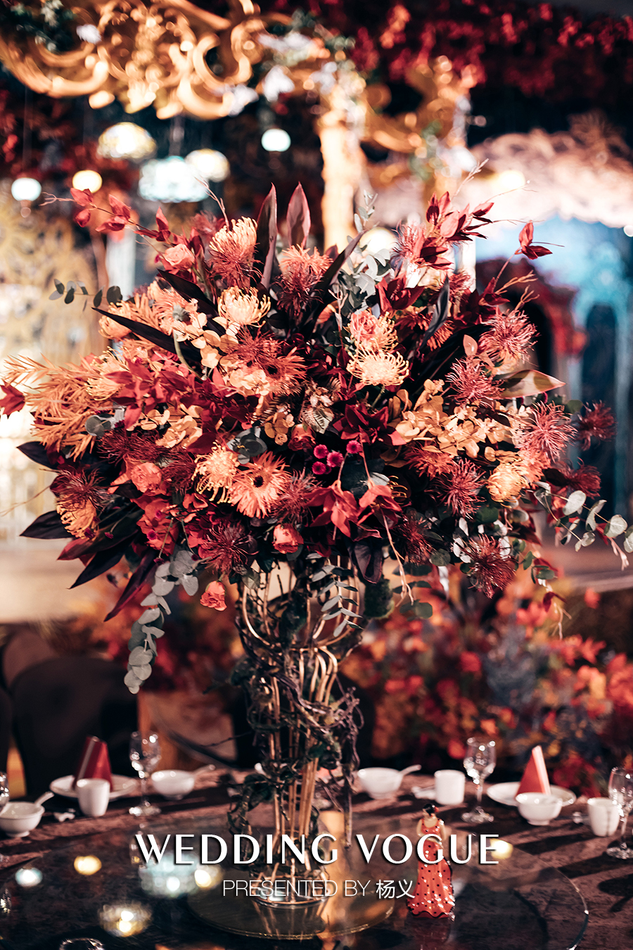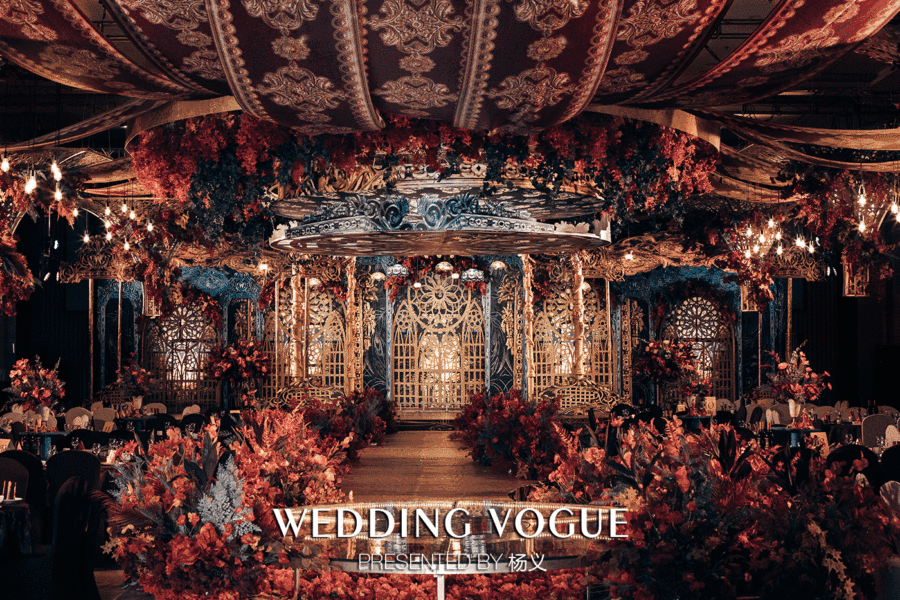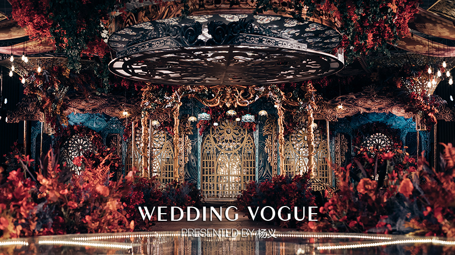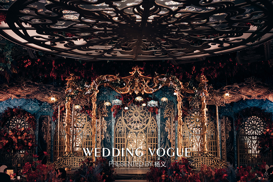 设计师杨义于是将圣家族大教堂的玫瑰花窗搬到了婚礼上来,以高饱和的色彩对比还原彩绘玻璃前太阳波光流转间的浪漫,让悬在窗棂的小酒瓶可以晃得轻轻,对着风温柔回应。