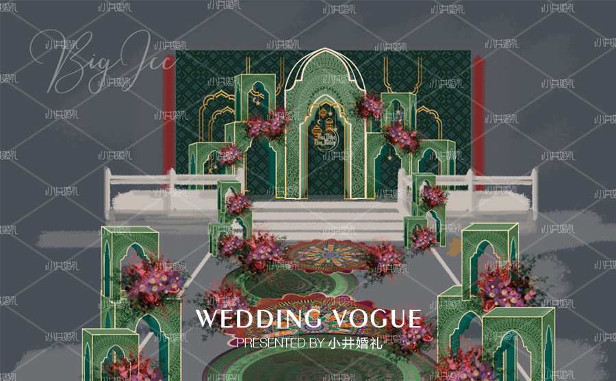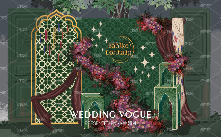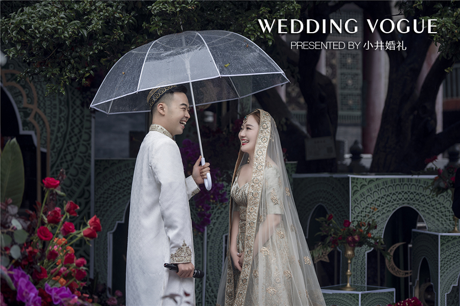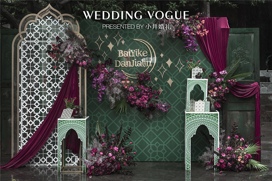 现场的设计也是特有的伊斯兰教风格,当然主婚纱也是要特立独行呀!