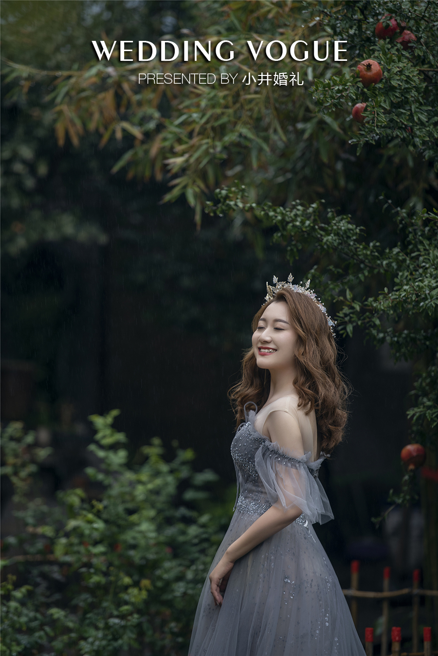 新娘钟爱的灰紫色,选择了灰紫色的礼服搭配星尘璀璨的轻纱作为出门纱,