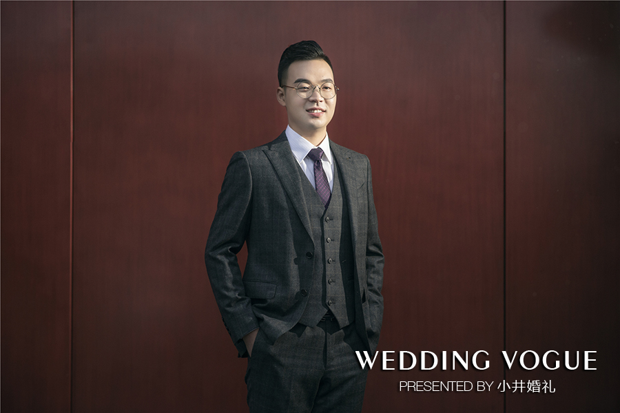 新郎的迎亲礼服是西装,但在西装款式方面,由于新娘喜欢马甲,