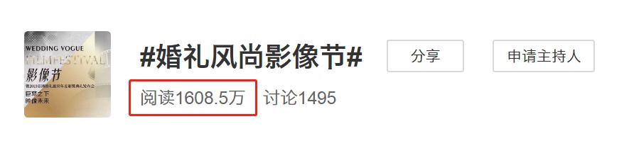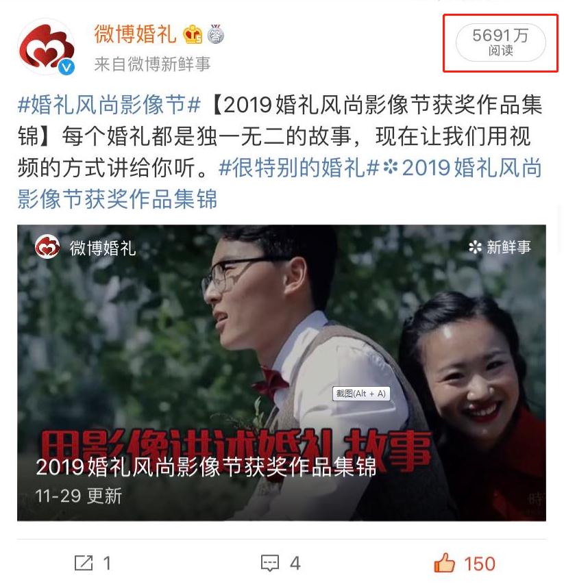 由微博婚礼发布的2019婚礼风尚影像节作品集锦内容阅读量高达5691万。