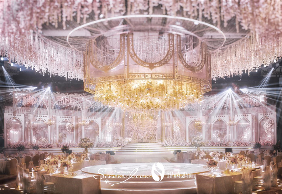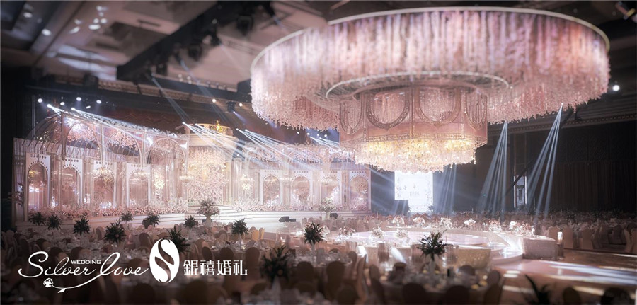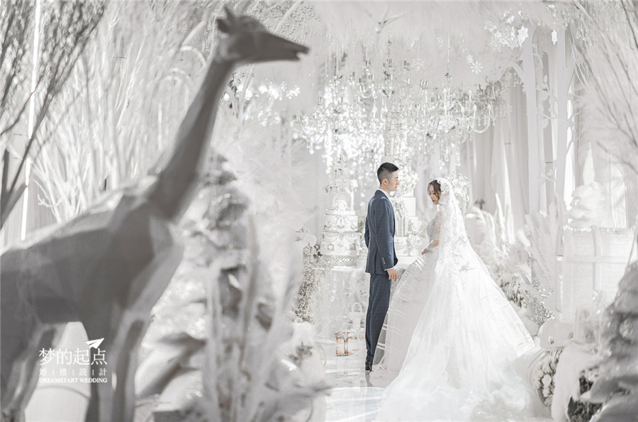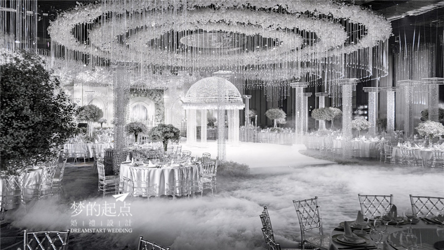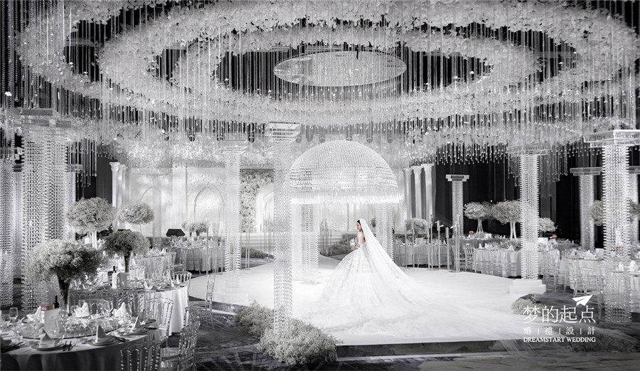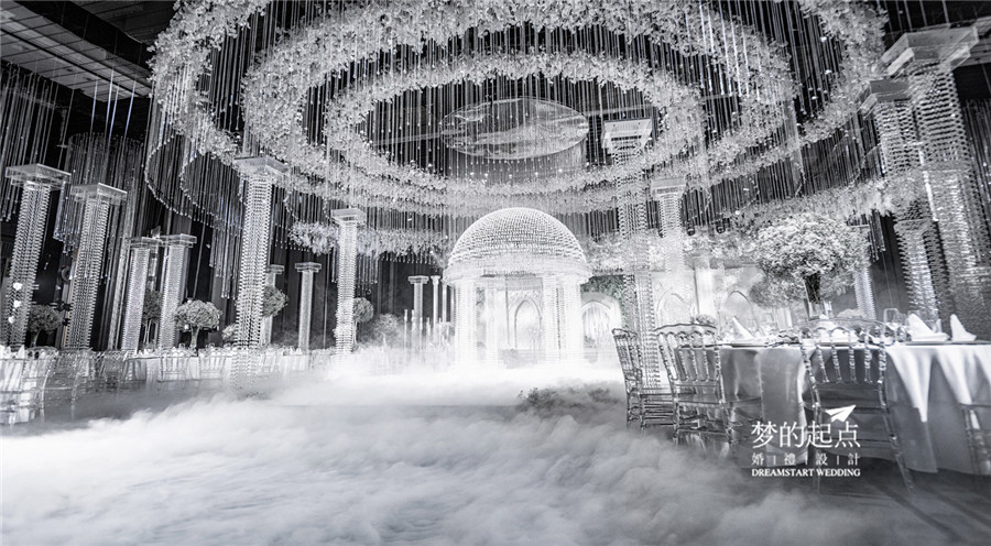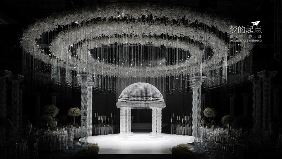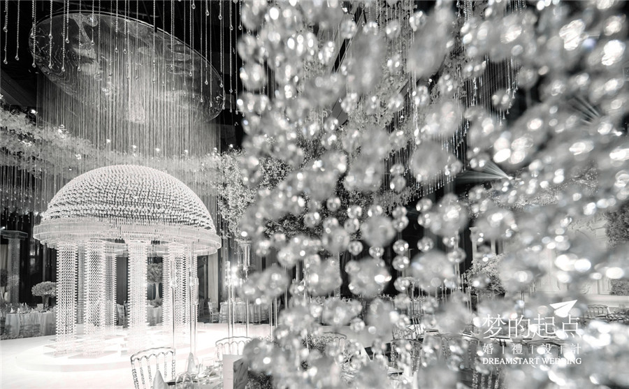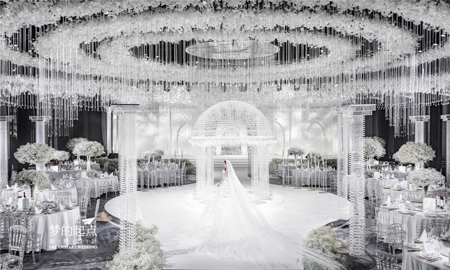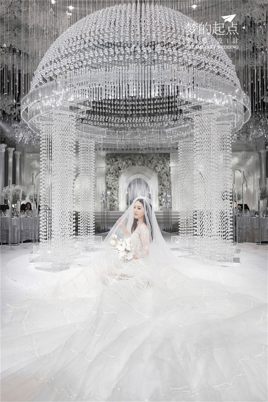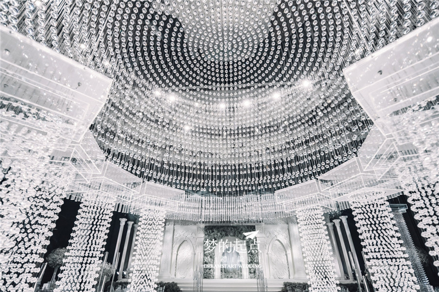 40万颗手工串制的水晶珠,40个小时不眠不休,80个人,2吨鲜花,30吨现场物料,一切的努力就为了确保这一刻的美丽与闪耀,用努力和专业,梦的起点为新人带来了这样一场婚礼。