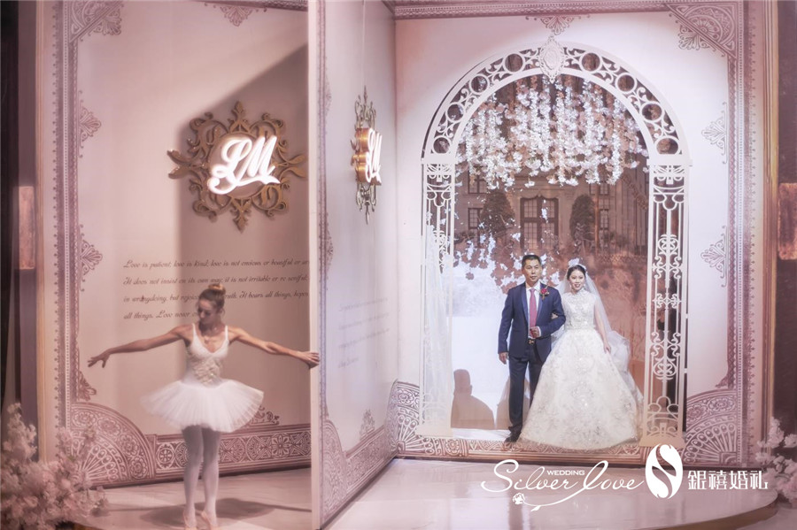 新娘在家人朋友的见证下,穿过水晶城堡的庄严和神圣,放大了爱情的珍贵与美丽,因为爱给予更多的自信、美丽、闪耀、绽放出动人光彩,从此开启华美的璀璨之路。
