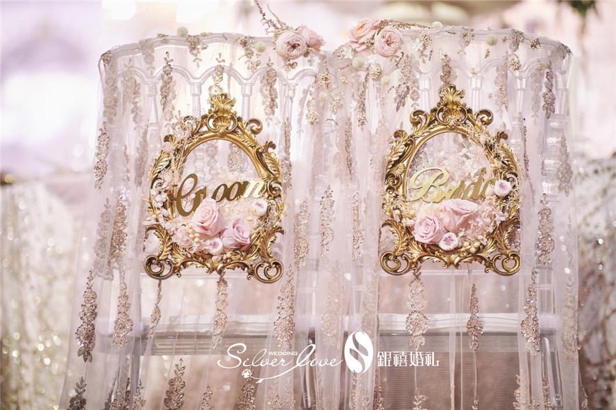 这份童话婚礼圆梦路上,新郎在其中发挥着不可忽视的作用。早在2017年,新郎就开始为新娘筹划了一场童话求婚,并以CHAUMET“为爱加冕”系列首饰作为定情之物。为延续这份童话浪漫,新郎在年初找到银禧,前后筹备近7个月,事无巨细,多次亲临银禧真实婚礼现场、确认调整设计效果。