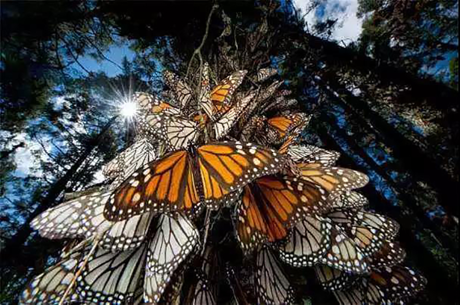 蝴蝶大的大如巴掌,小的小如蜜蜂,成串悬挂于泉边的合欢树上,五彩缤纷。