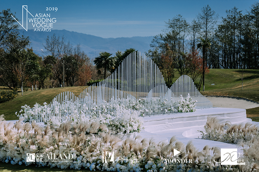 艾岚 AILAND 海外婚礼以作品《苍岚出岫》在苍山之上为大家带来了传统与现代时尚相碰撞的作品。