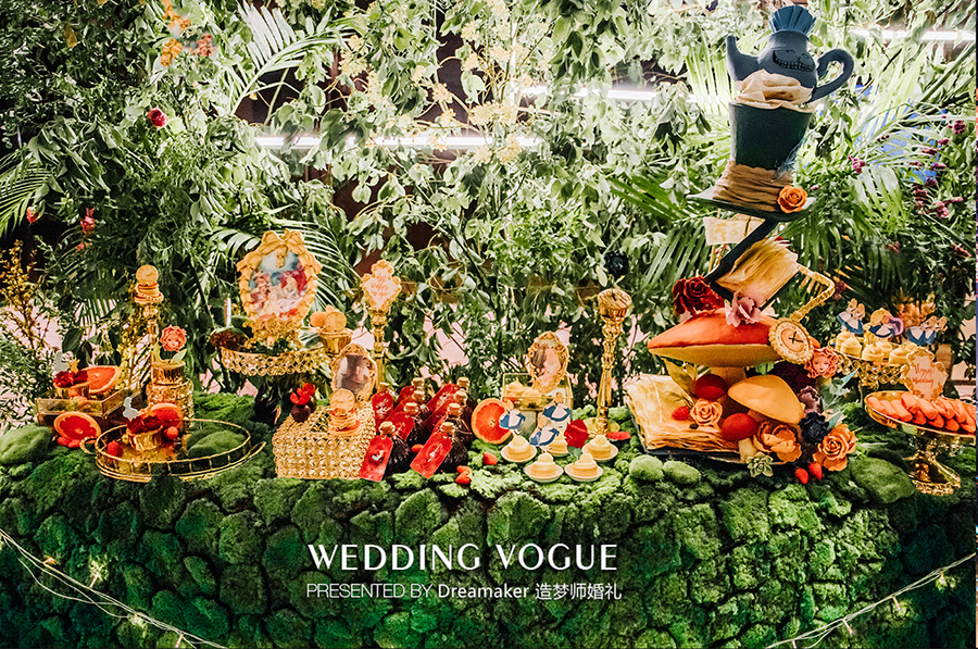 甜品桌变身绿色的苔藓石台,会说话的茶壶、