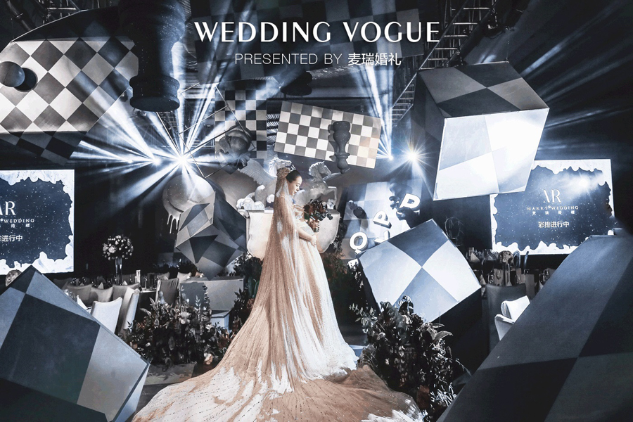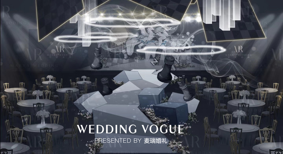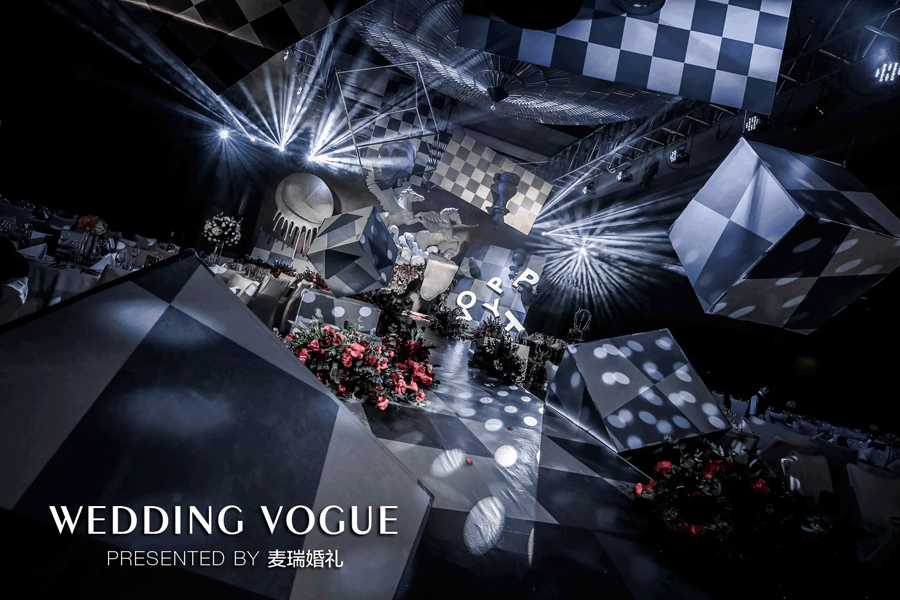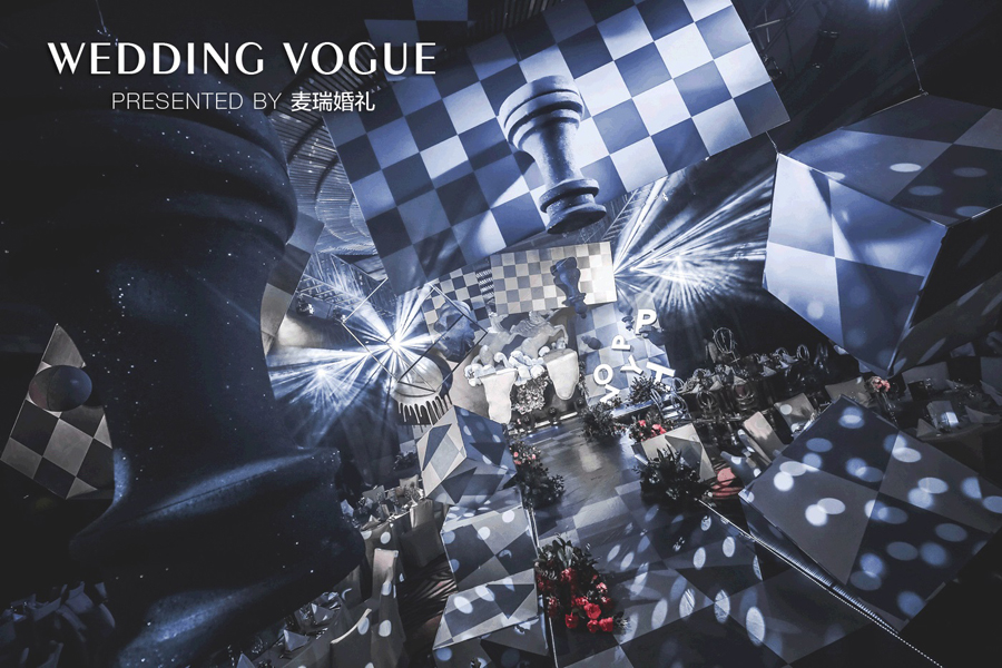 从入口处就可以看到无处不在的棋盘图案,一直延伸,几乎占据了整个主会场,这包含着麦瑞婚礼对于这对新人的诚挚祝福,棋盘上的人生,你不必步步为营,因为我们有彼此。