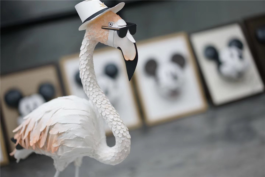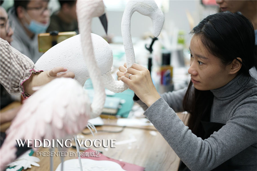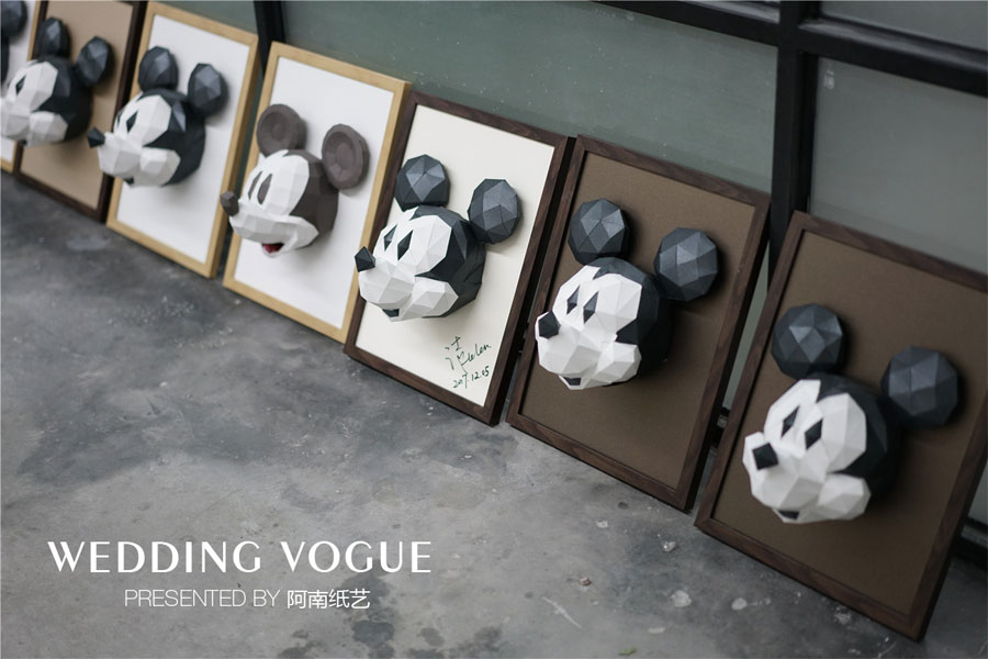 对于场景设计颇为重要的纸雕造型设计,还有婚礼上比较热门的热带雨林的场景设计也是课程的重点内容,除了纸艺火烈鸟、纸艺大象、纸艺长颈鹿,他们还尝试制作了唐老鸭和米奇。对于纸艺造型来说,只是普通的纸张,通过不同的裁切,折痕处理以及最后的组合,就可以让米奇神态栩栩如生,这项细腻的练习让学员受益匪浅,也让他们对纸艺魅力有着深层次的认识。