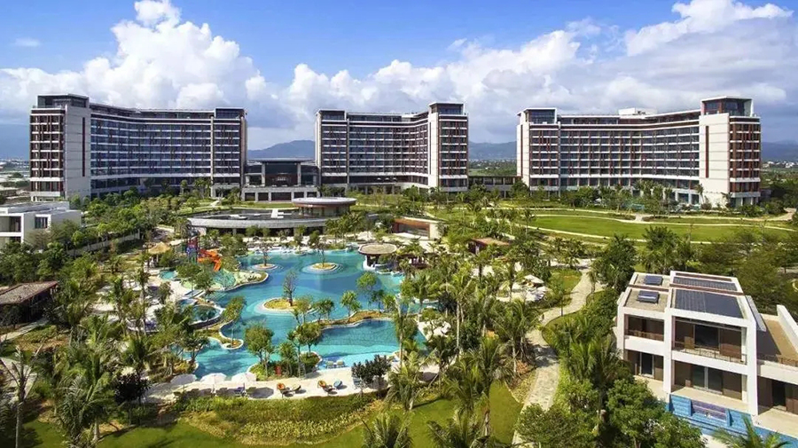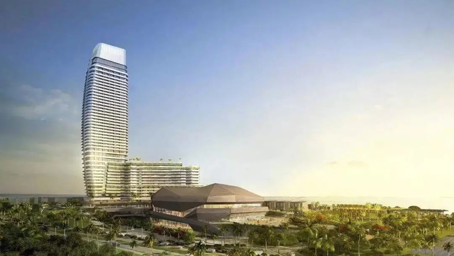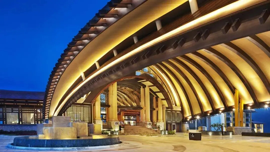 场地特色:设计风格融汇东方特色文化以及琼岛本土文化,集度假酒店、娱乐、餐饮、购物、演艺、物业、