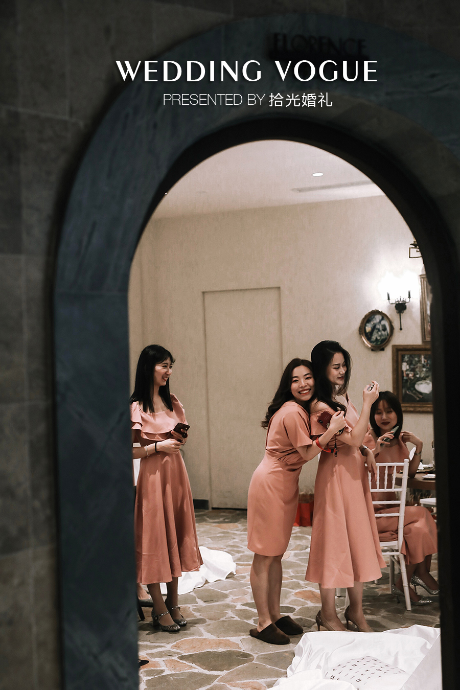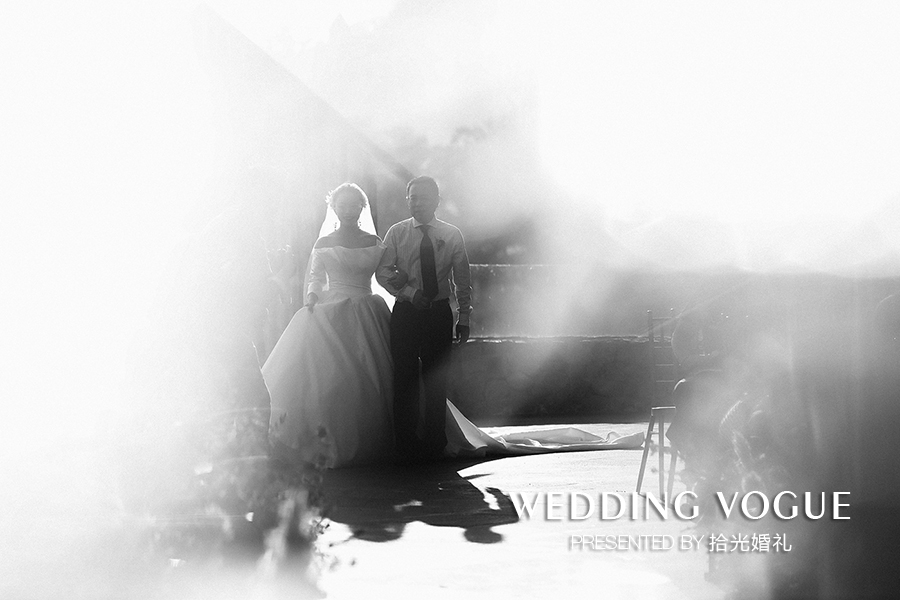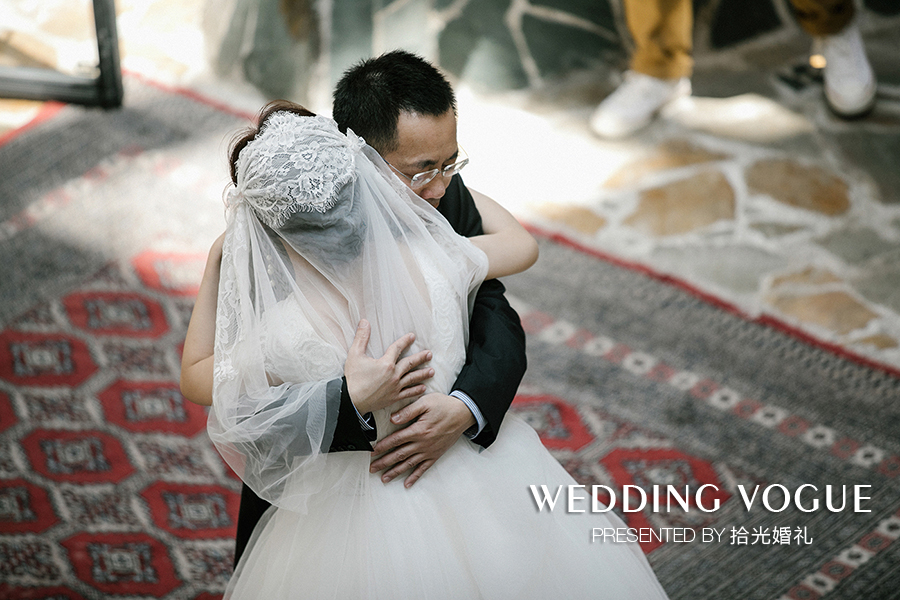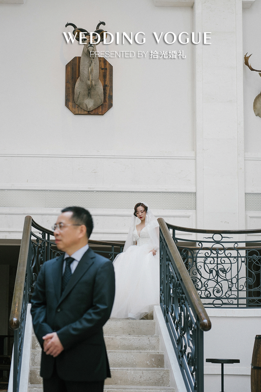 第一个first look在裸心堡室内,小谷穿着婚纱从楼梯上慢慢走下来,第一个看到她穿婚纱的男人,是爸爸。