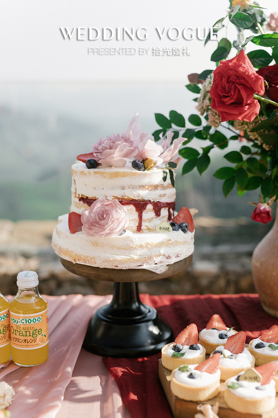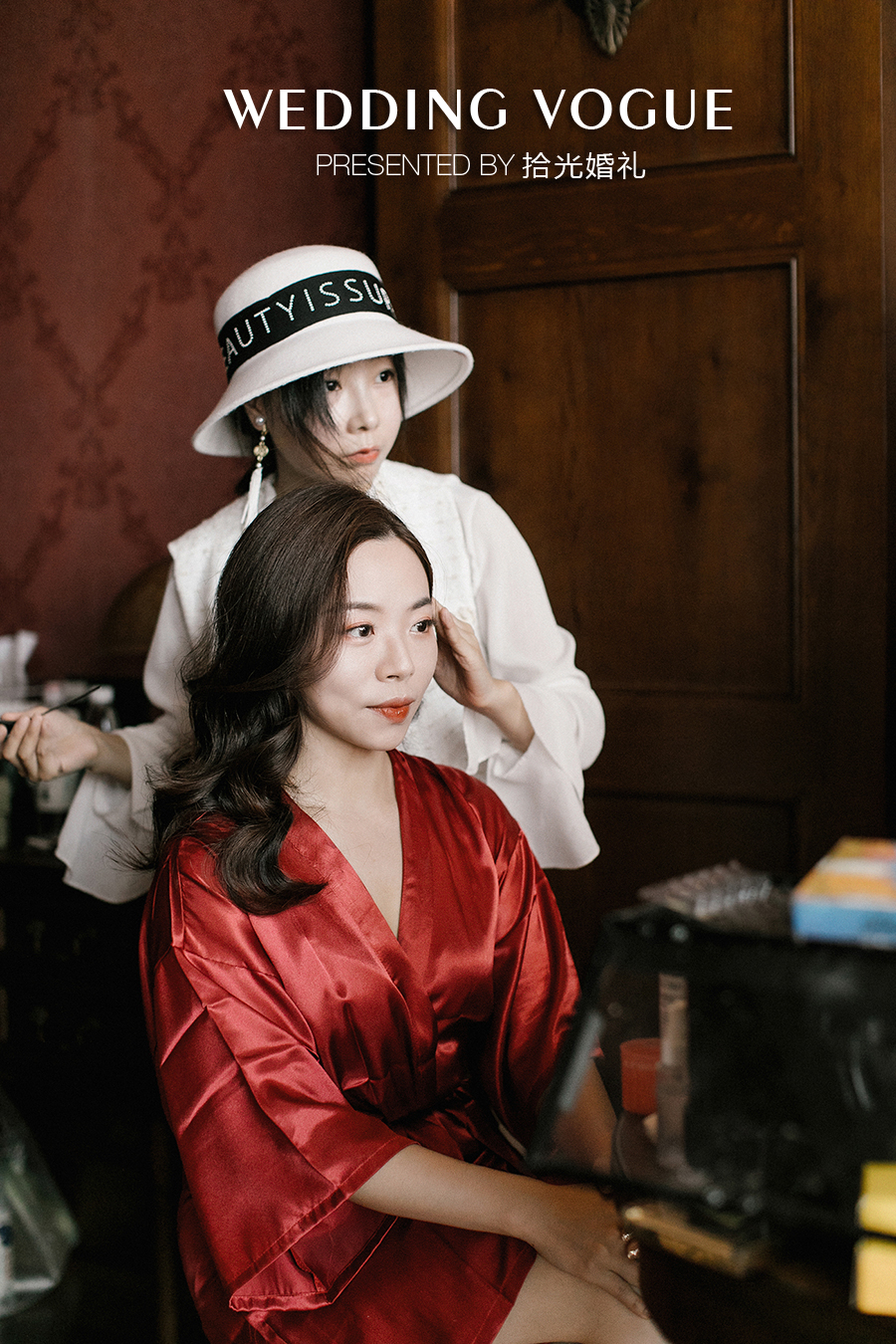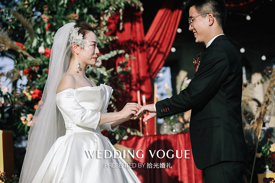 小谷不喜欢太复杂的东西,喜欢偏酒红色橙色系的暖色调,所以我们把勃艮第酒红作为婚礼设计的主色调,点缀橙色。