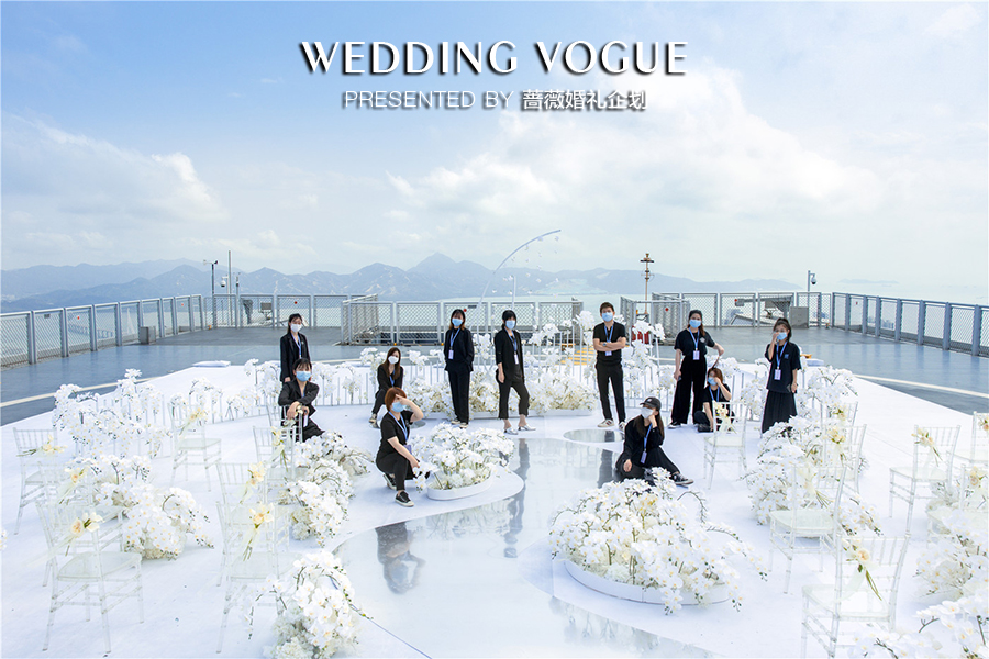 350米的云顶之上,绽放的鲜花、繁重的铁艺、阴晴不定的天气,火辣的太阳与狂热的风交织,每一处布景与搭建,都凝结着蔷薇婚礼企划每一位执行人员的汗水与努力。