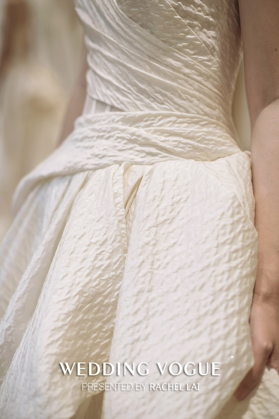 这款婚纱是先有了面料,然后设计师才有了灵感,设计师看到面料,觉得很特别,吸引了她。