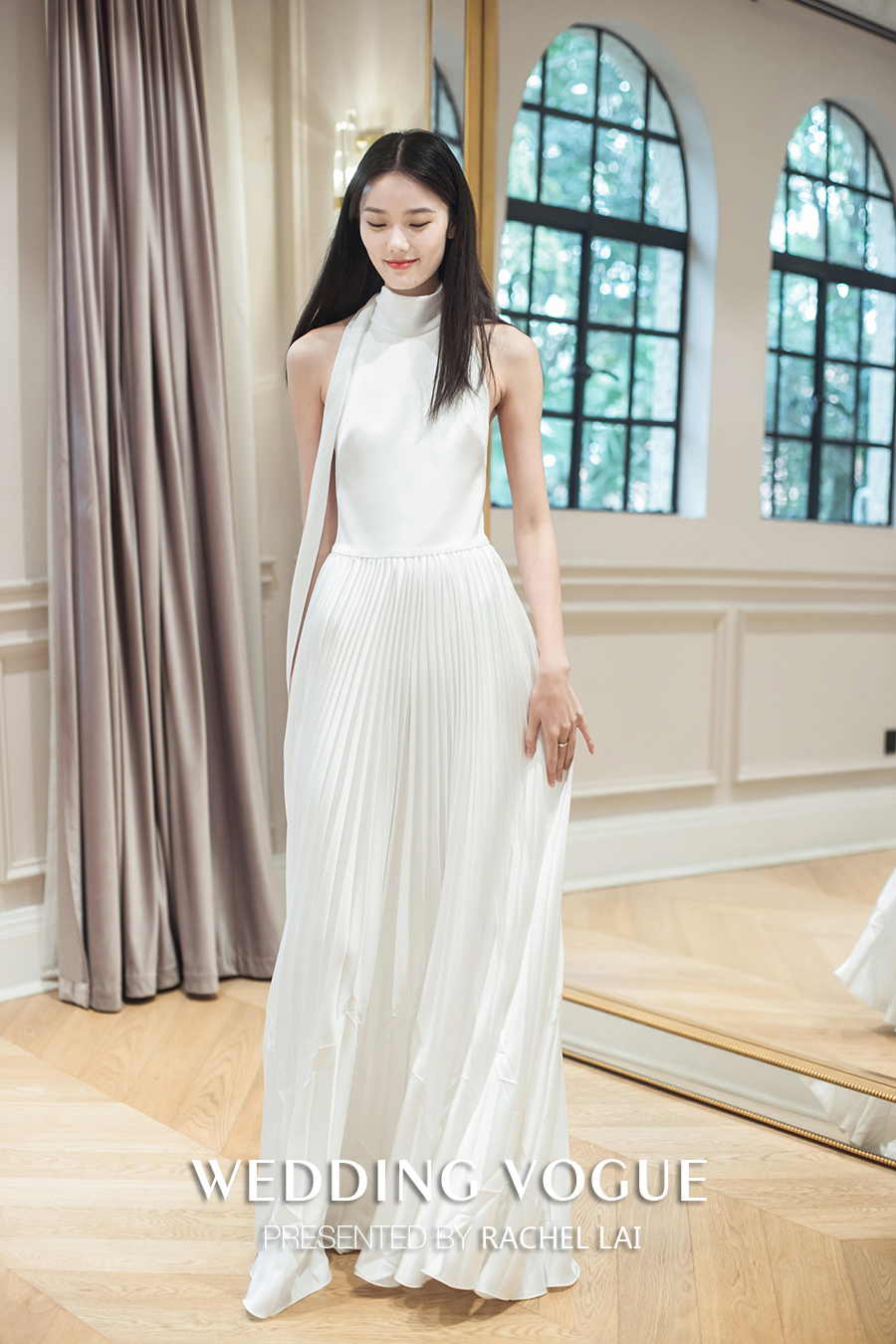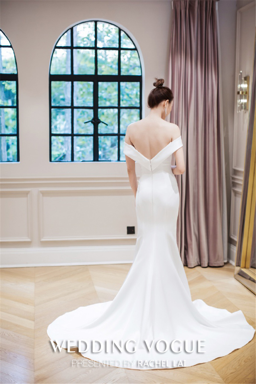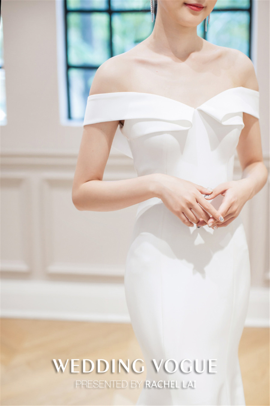 这是延续RACHEL LAI品牌风格的经典款,肩部设计衬托出优美的肩部线条。修身的鱼尾廓形,恰到好处地贴合身材.将温婉与摩登完美融合。