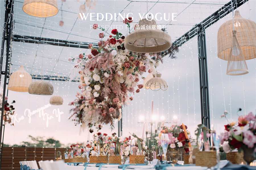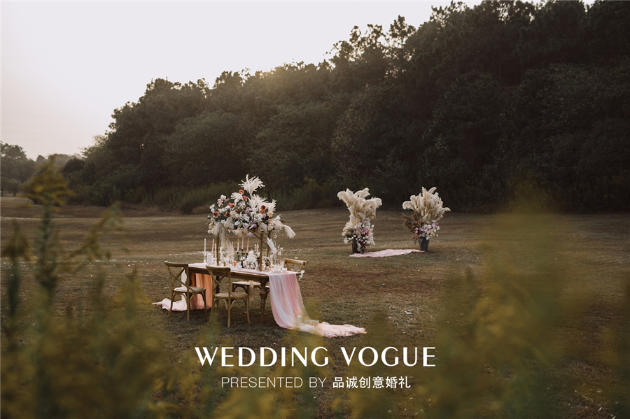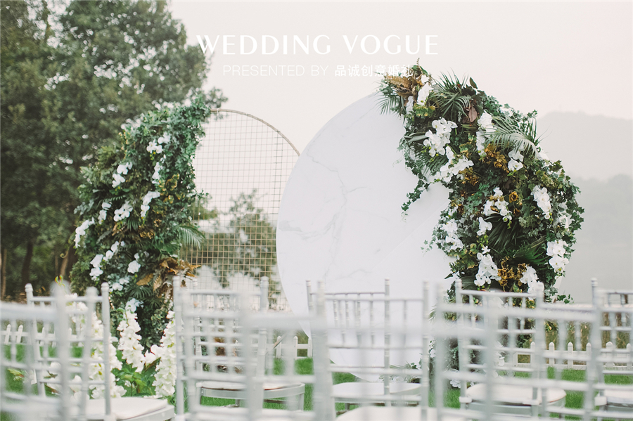 整体风格:户外草坪婚礼,湖景,山景婚礼