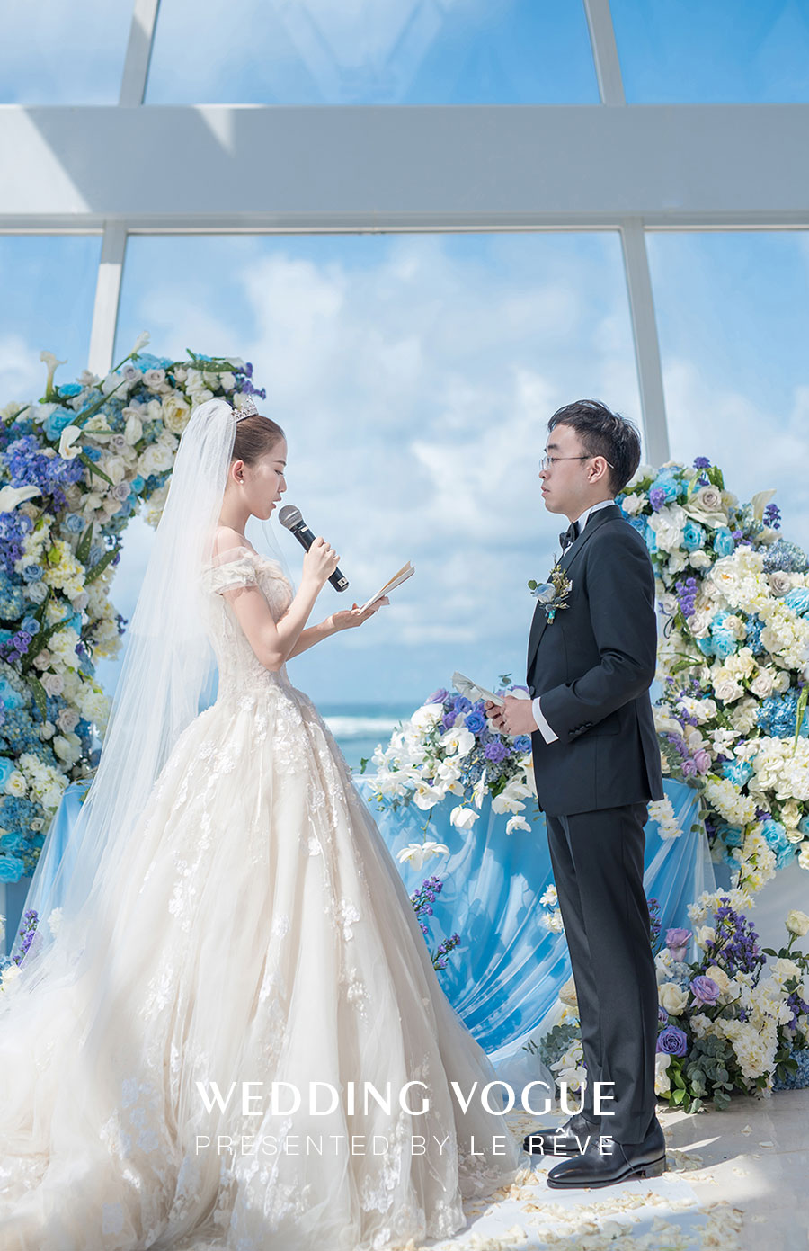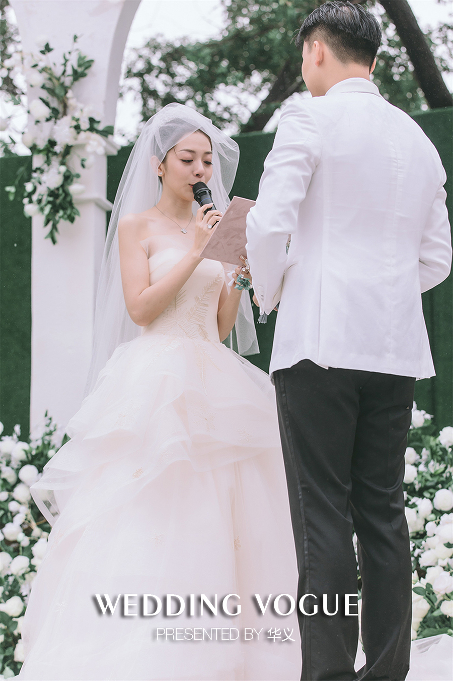 很多人问我,你为什么爱他,我会跟他们讲,因为你让我成为了一个比我想象中更真挚、诚实、和坚强的女人。我此刻无法用华丽的辞藻来告诉你我有多爱你,但我向你保证,我会为你,为我们的家庭和我们即将一起走上的美好人生旅途而付出一切,我爱你。