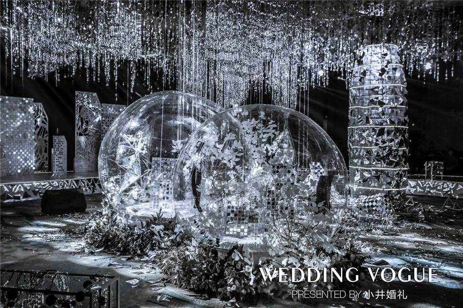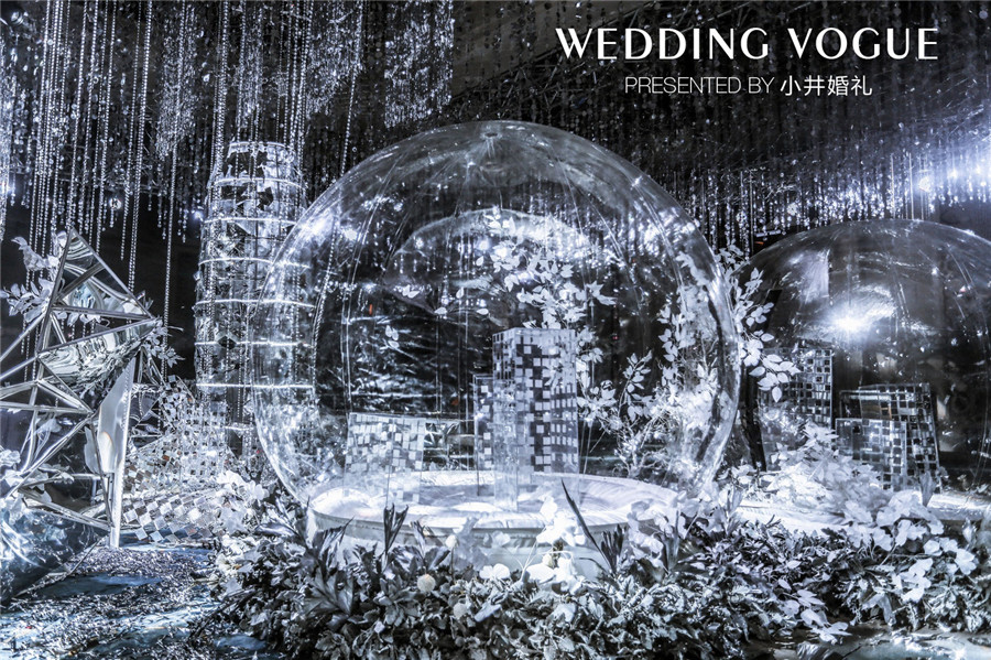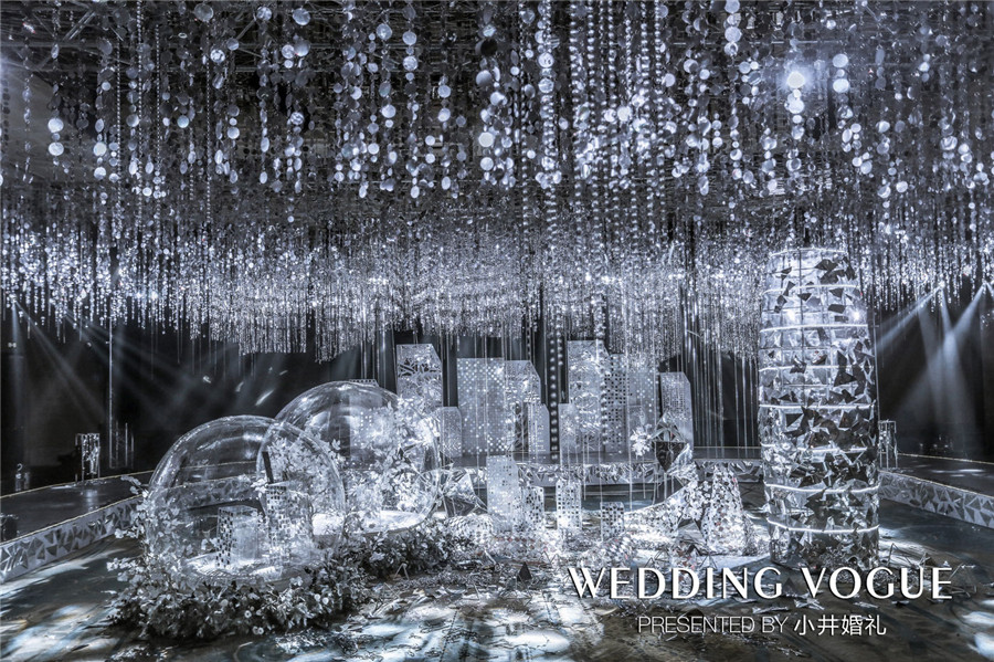 在此次婚礼秀中,小井婚礼在现场运用寓意“永恒、不变”的钻石元素,打造了一个璀璨的世界。