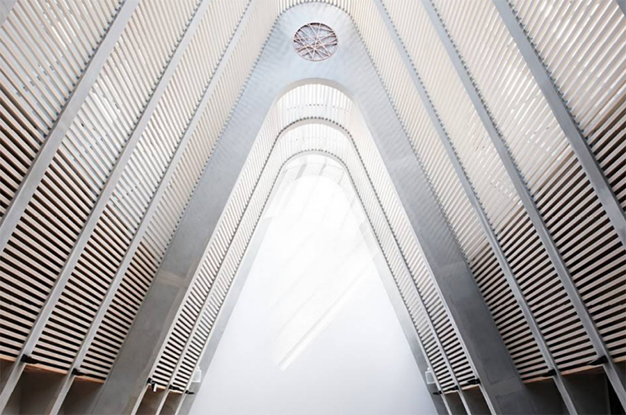 在这里,庄严神圣、纯粹真实,极简风的灰白尖顶教堂别有一番情调。