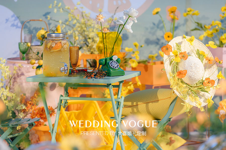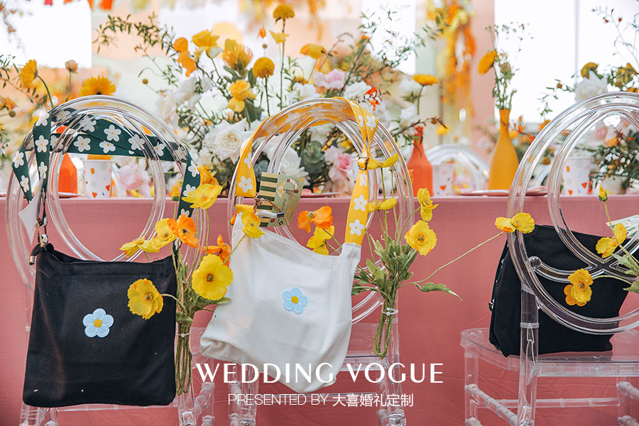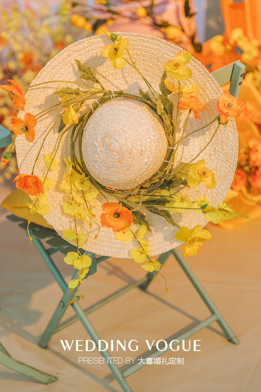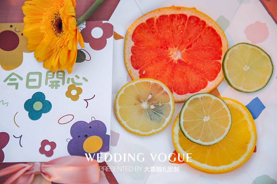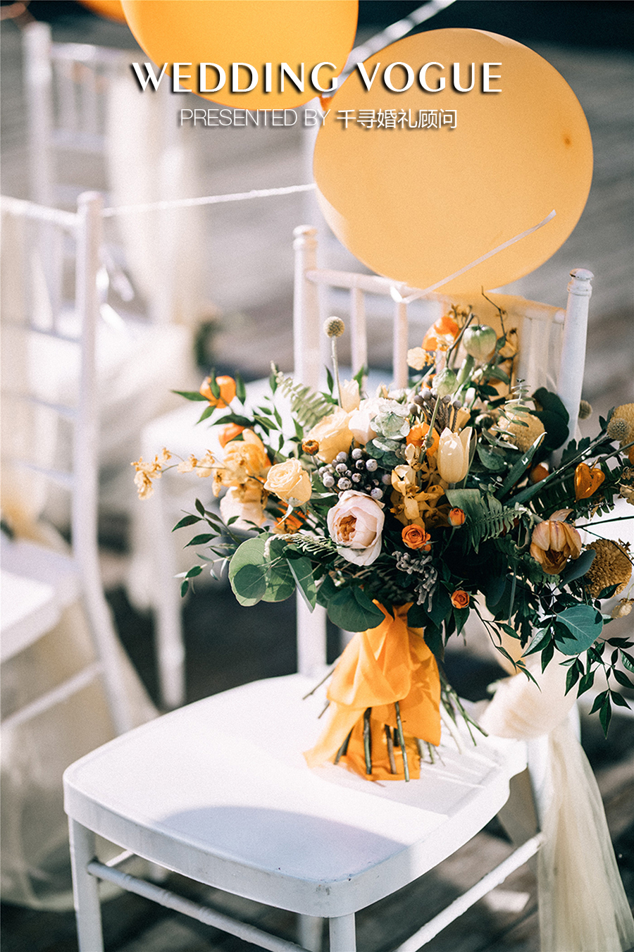 喜欢这活力的橙黄色,一场可以左手摘颗葡萄,右手剥瓣橘子的婚礼,海风、花样、果香、很有爱。