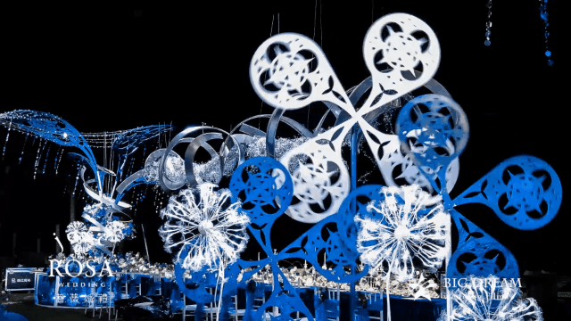 未来塔、周边草坪及别墅草坪占地6,800平米,夜晚的灯光秀美轮美央、璀璨迷人,它给予了新人对美好未来的一切憧憬。